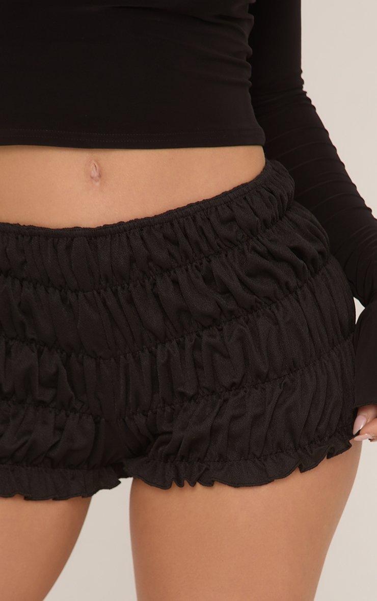Perfect for a glam night out, these black cotton hot pants bring all the vibes, doll. Featuring a shirred material with ruched detailing, they’re your must-have staple for sleek, sassy looks this season.