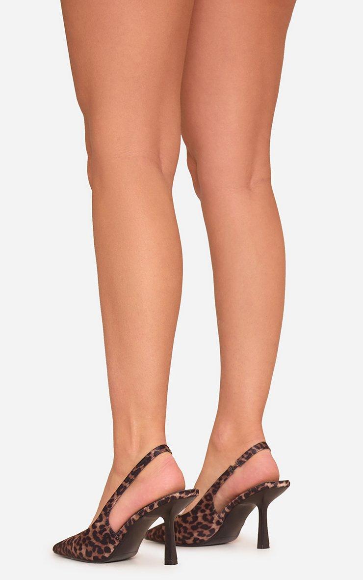 Kitty Pointed Toe Slingback Court Heel In Leopard Print Satin