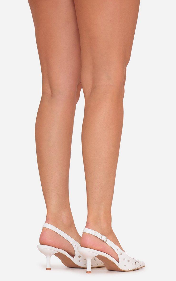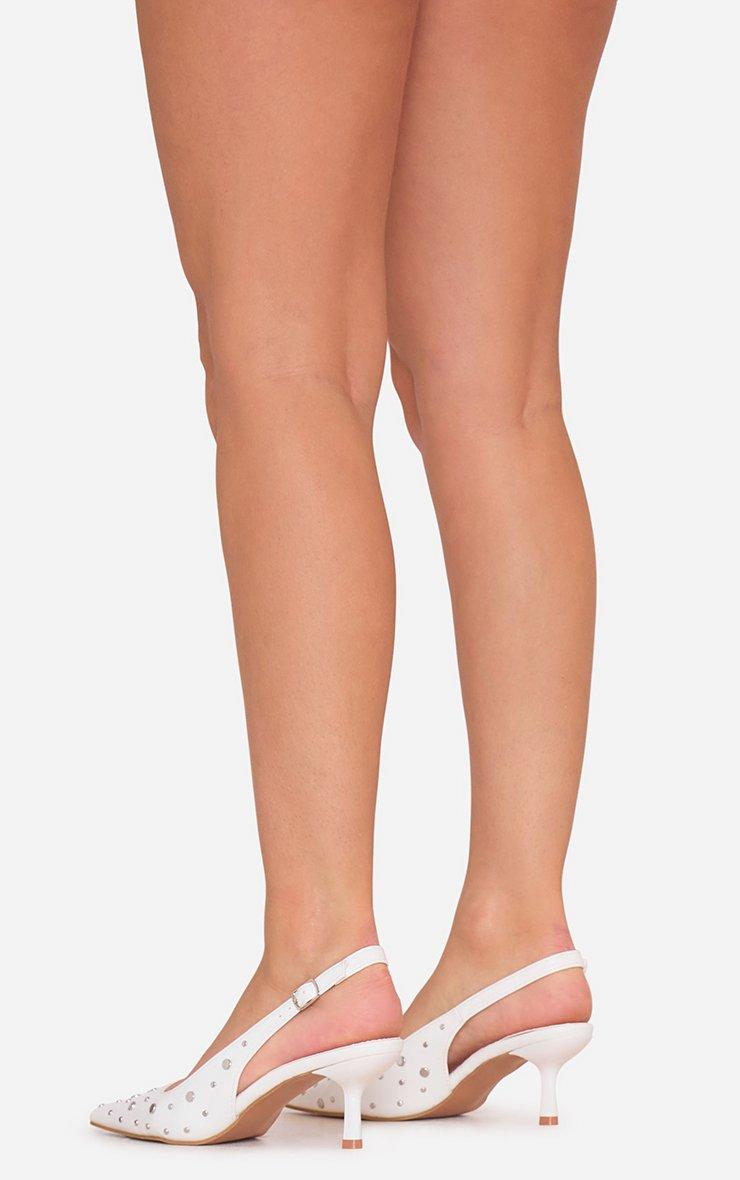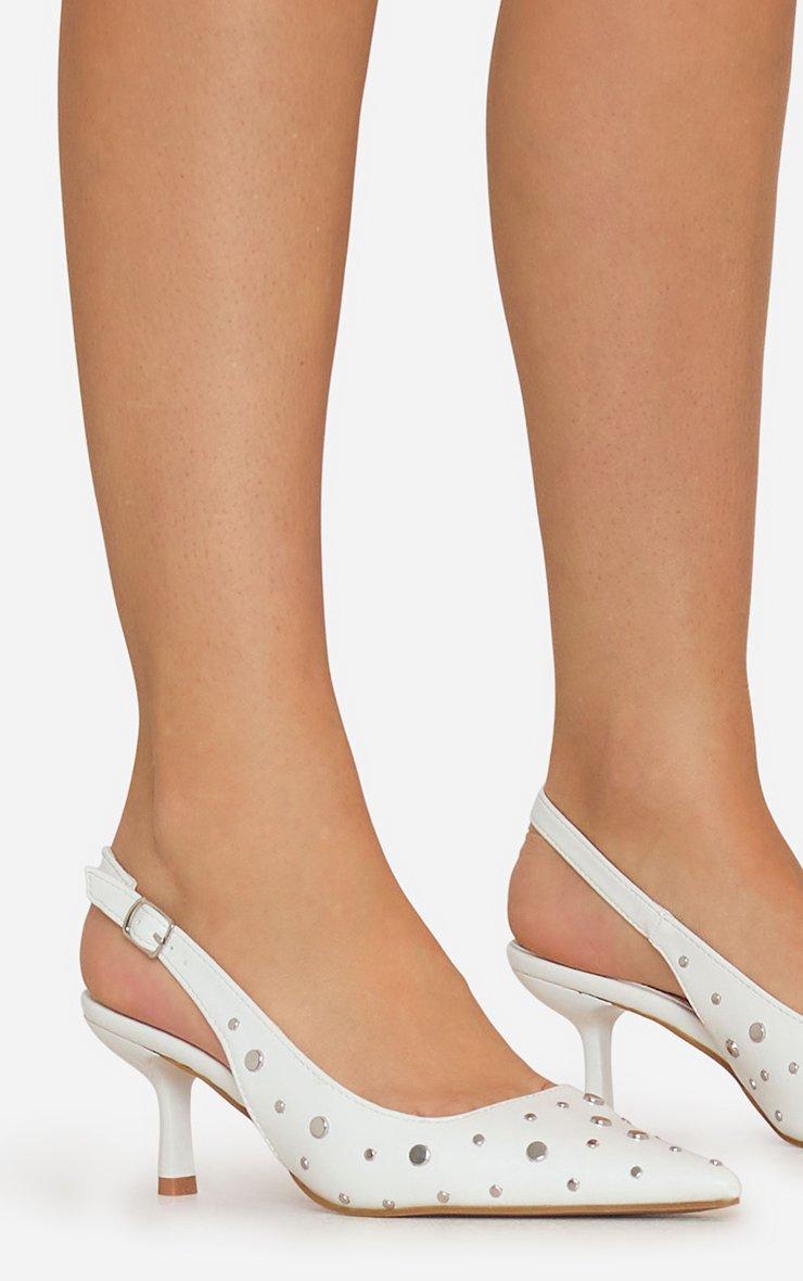 Jones Stud Detail Pointed Toe Slingback Court Heel In White Faux Leather