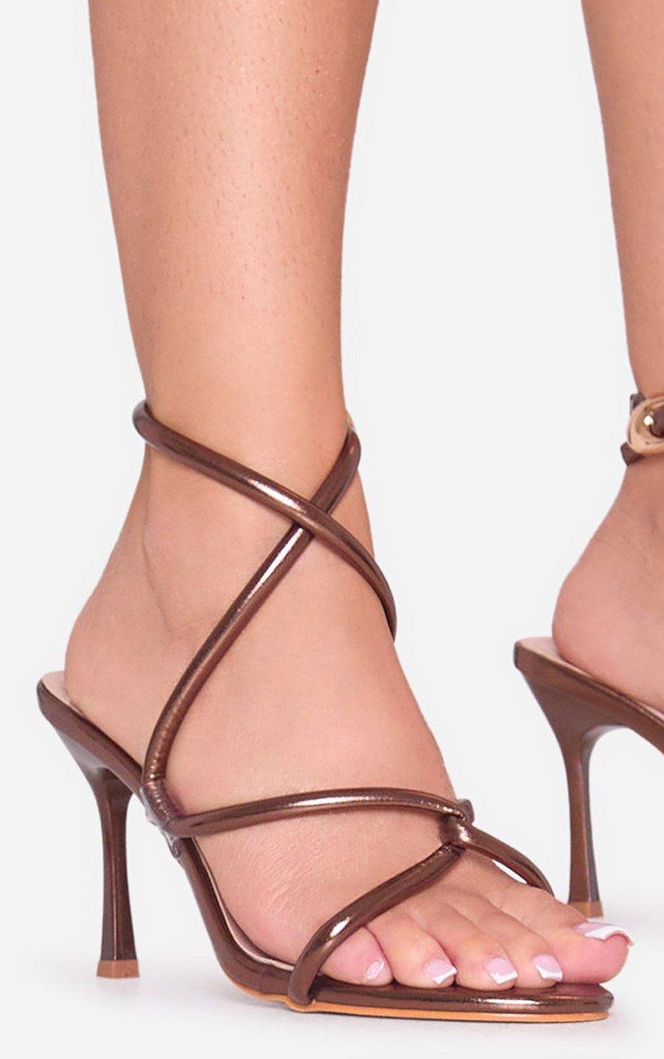 For dinner dates or chic nights out, doll. Featuring brown faux leather with cross buckle and ankle strap detailing, these heels add a warm, bold edge to your look with effortless elegance.