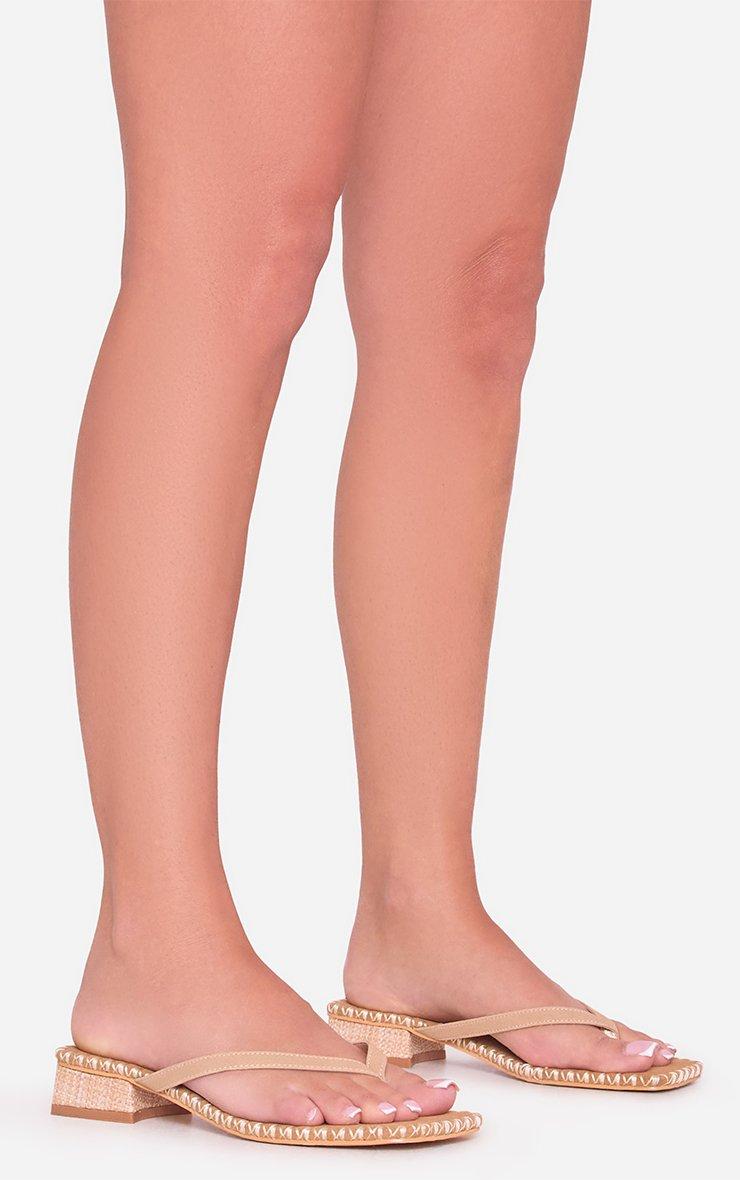 Made for effortless days and chic nights, featuring light tan faux suede material with thong strap and low heel detailing—these mules serve laidback vibes with serious style, doll. Step up and keep it cool.