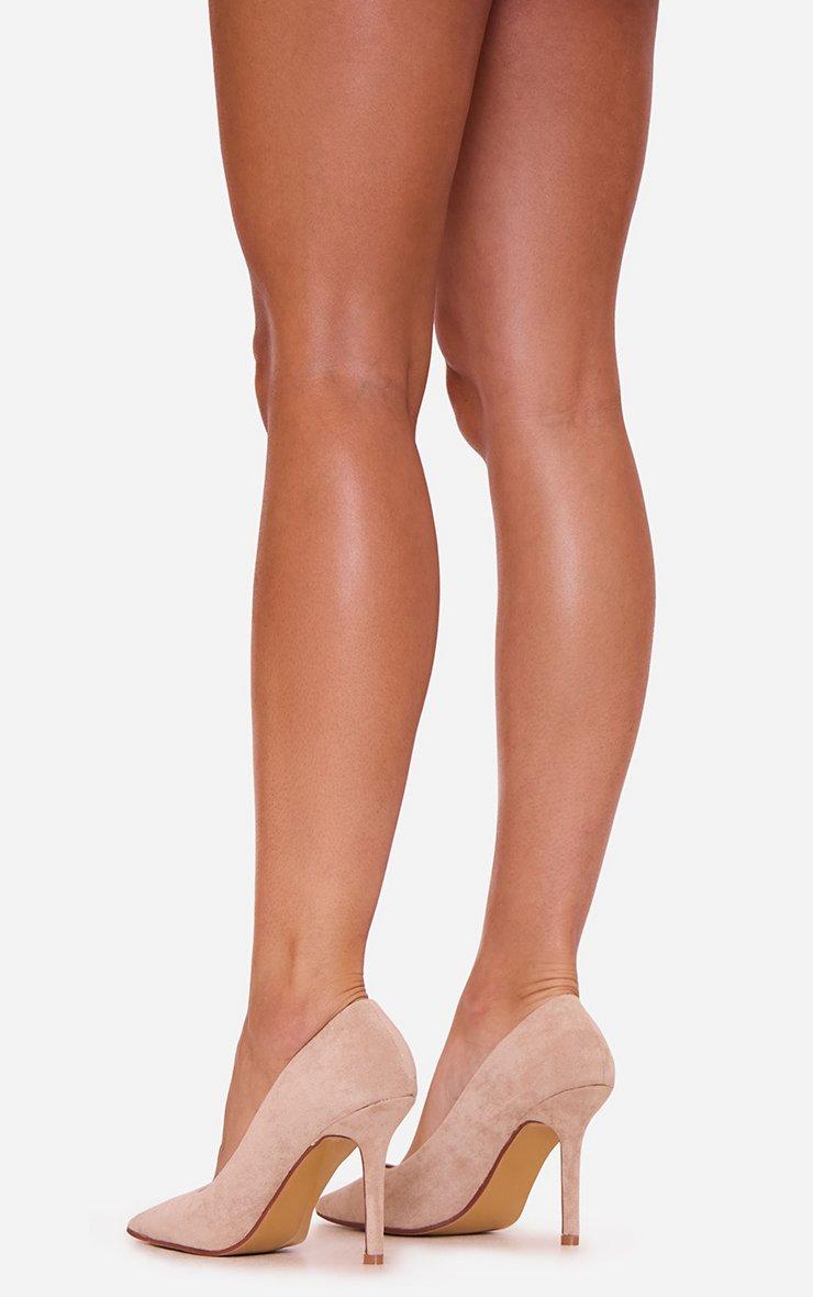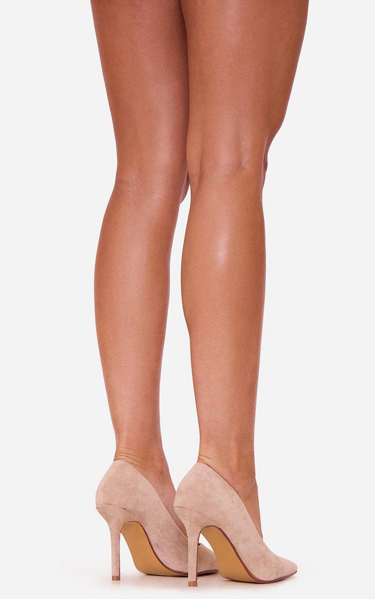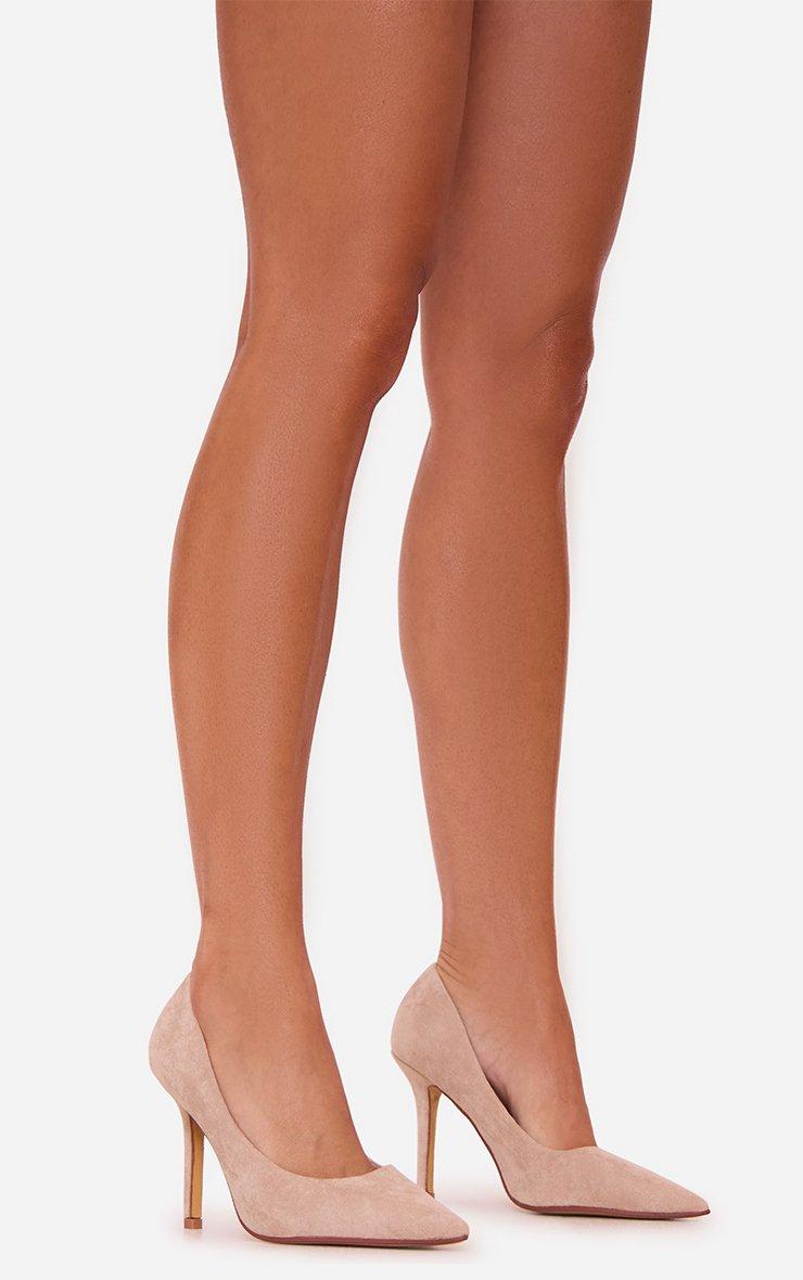 Azula Pointed Toe Court Heel In Beige Faux Suede