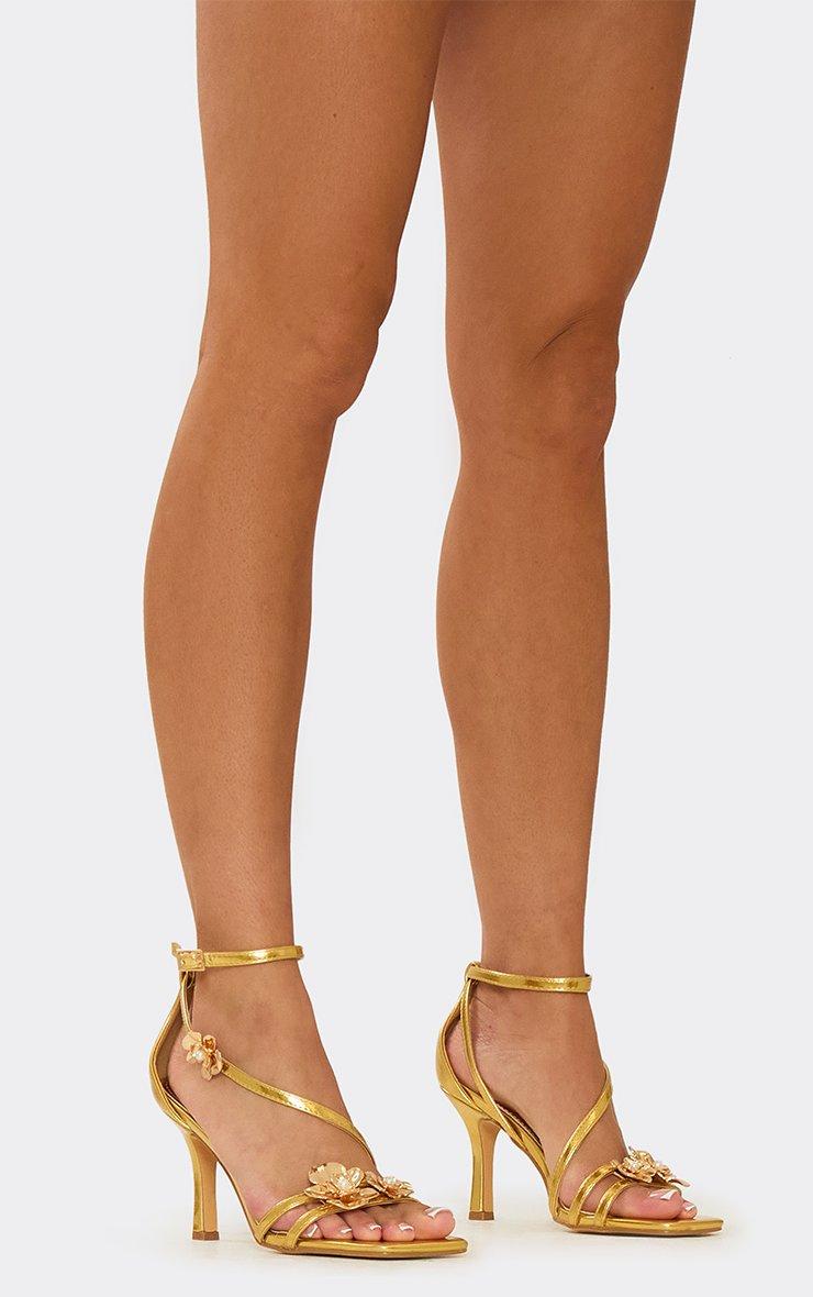 Selima Flower Strappy Detail Heel In Gold Faux Leather