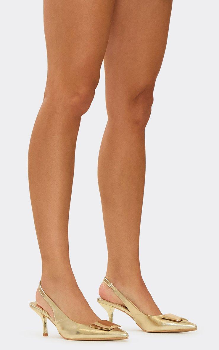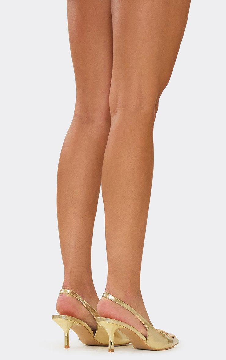 Kofi Pointed Toe Slingback Court Heel In Gold Faux Leather