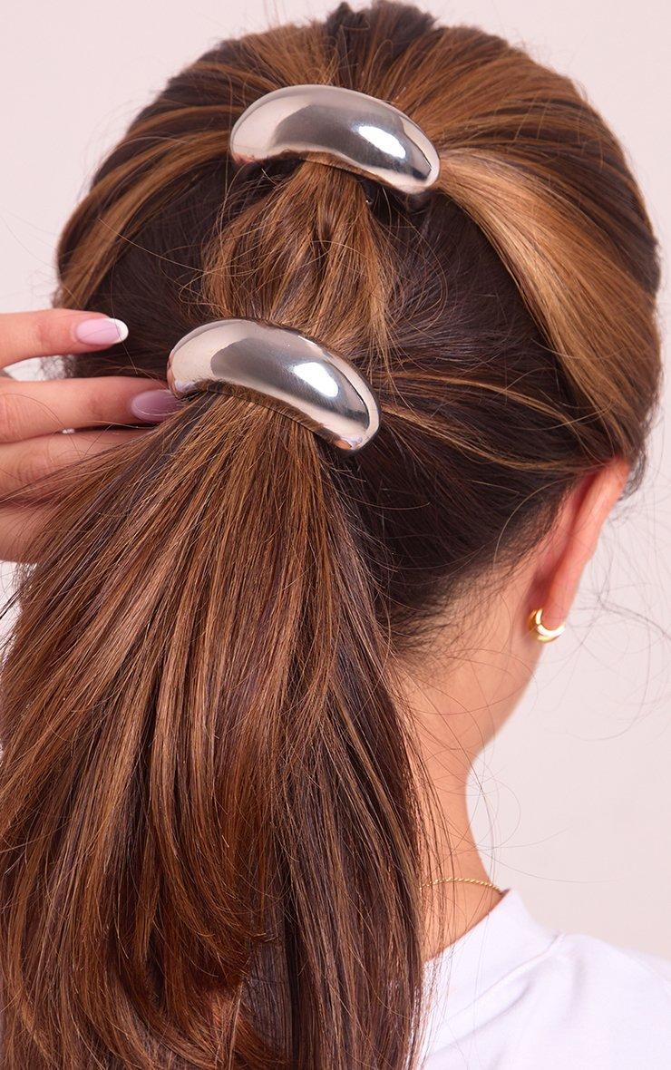 Rounded Bar Detail Hair Bobble In Silver