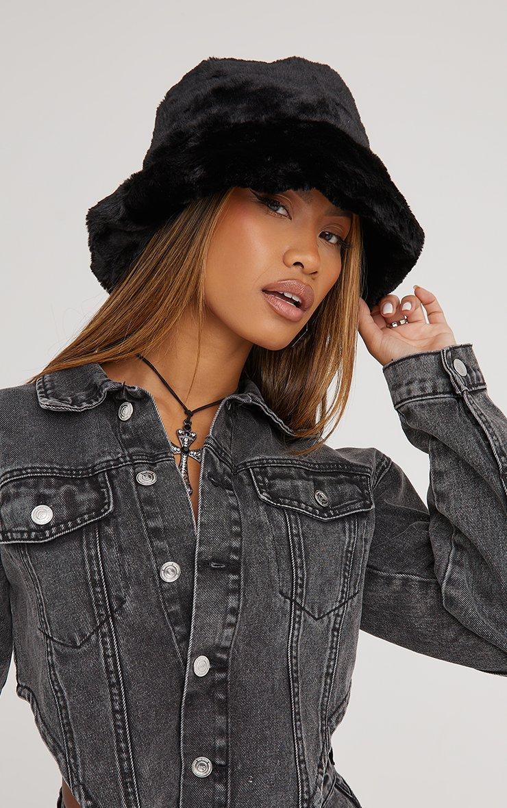 Give your everyday look a cosy update doll. Featuring a black faux fur material, in a bucket hat design.