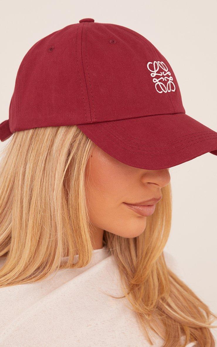 Complete your everyday look with this versatile cap doll. Featuring a burgundy material, with logo detailing, in a baseball cap design.