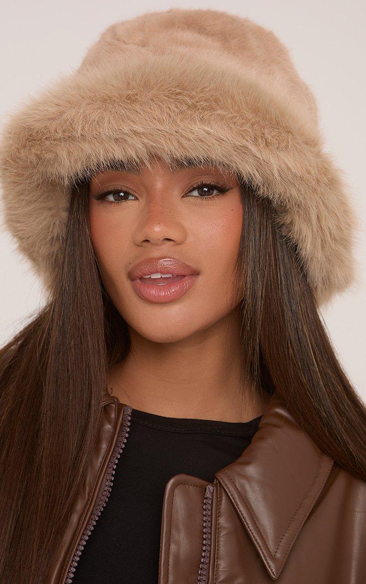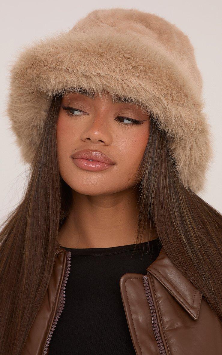 Oversized Hat In Nude Faux Fur