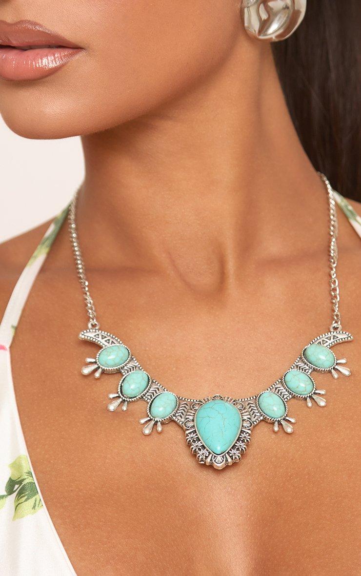 Turquoise Stone Detail Chunky Necklace In Silver