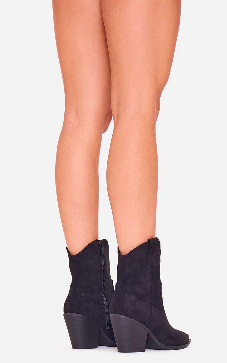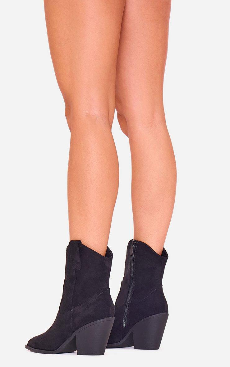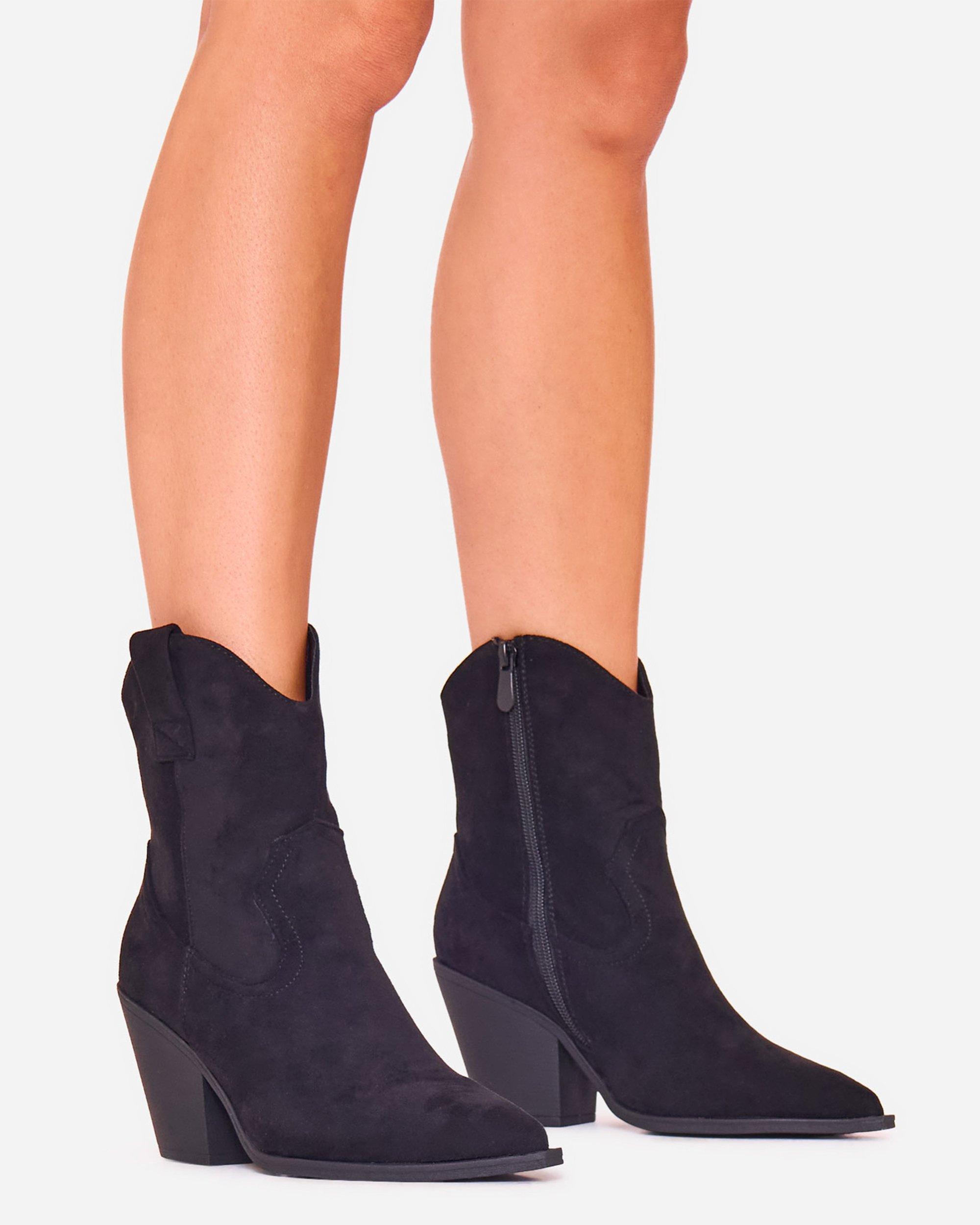 Toni Block Heel Pointed Toe Western Cowboy Ankle Boot In Black Faux Suede