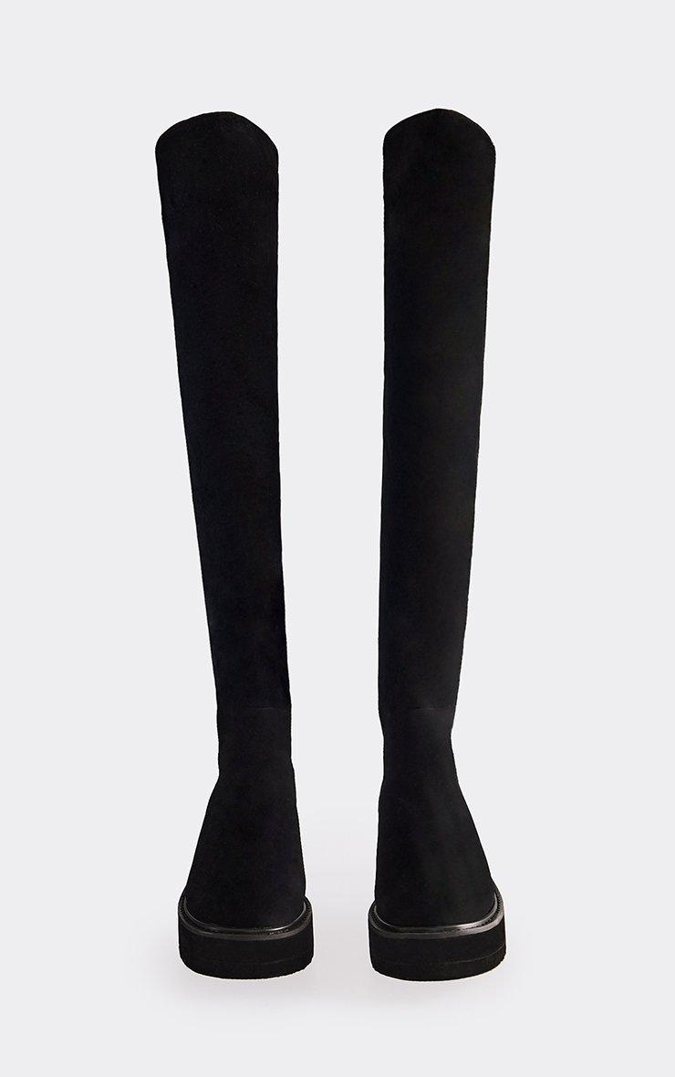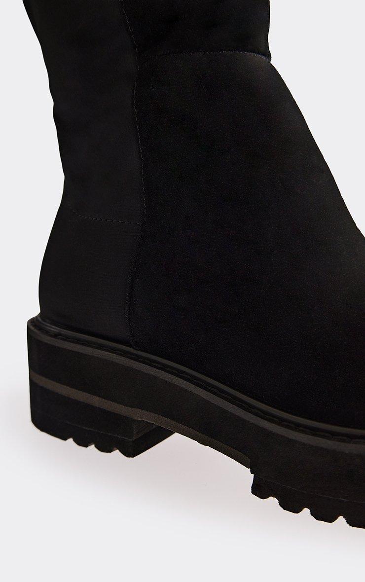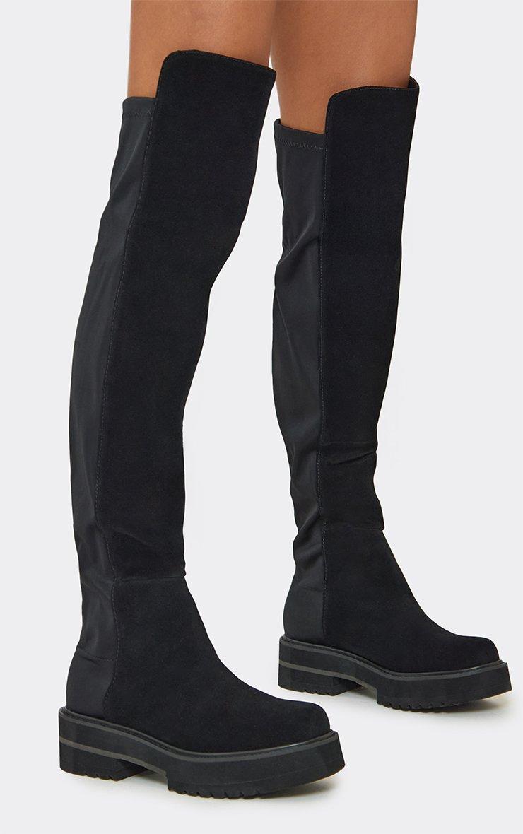 Dyad Chunky Sole Knee High Long Boot In Black Faux Suede