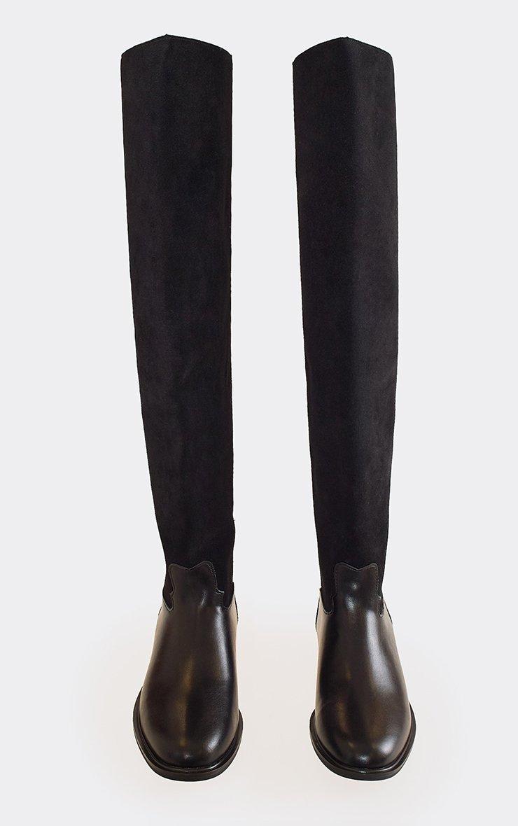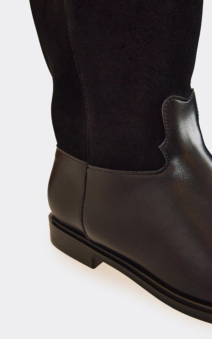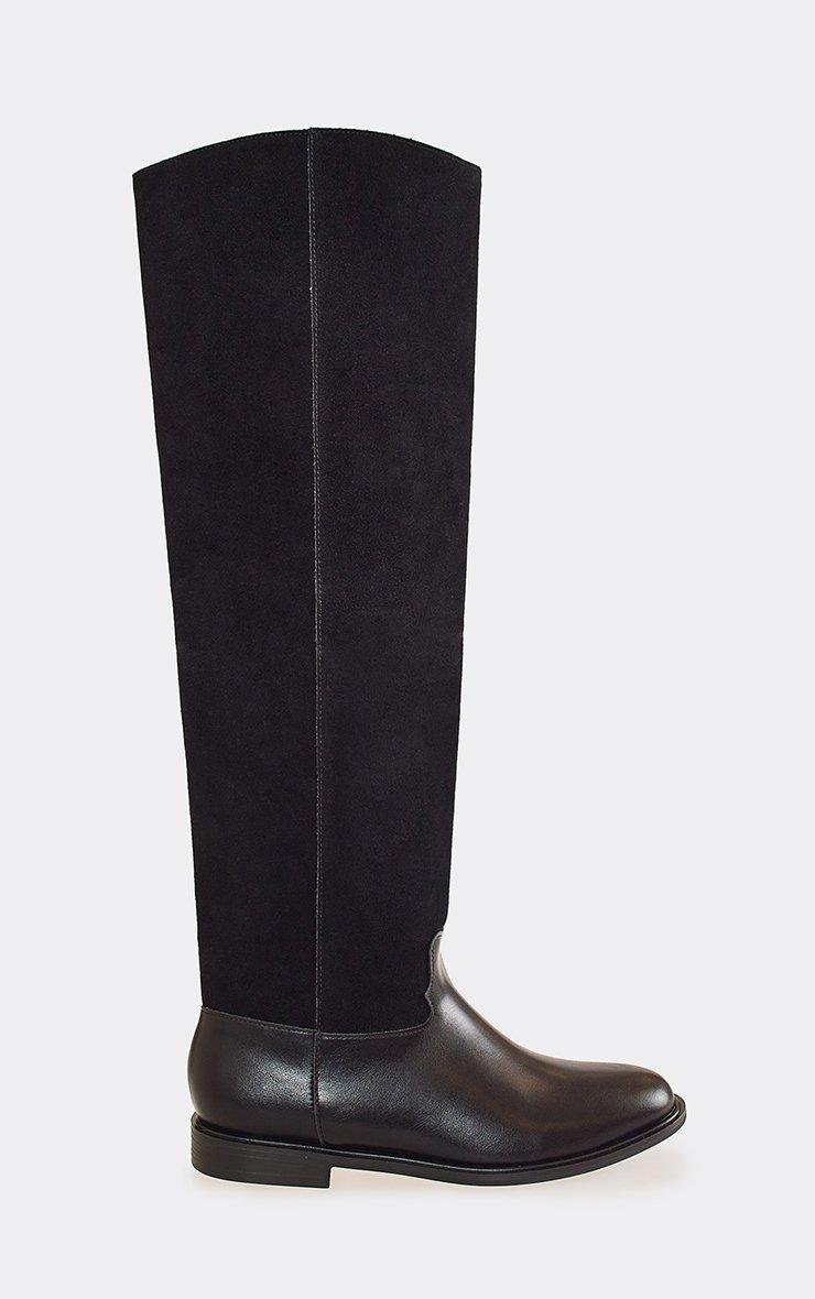 Top-Rider Contrast Detail Knee High Long Flat Boot In Black Faux Leather