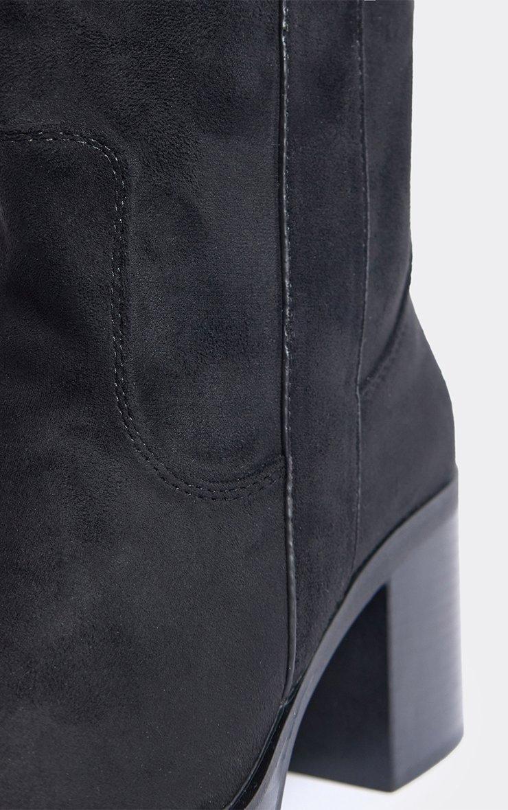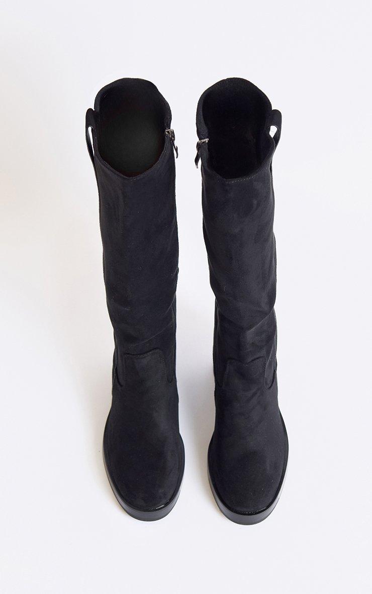 Bring sleek-chic vibes, doll! Made in black faux suede, these knee-high boots feature a block heel, giving your look a bold, statement-ready finish.