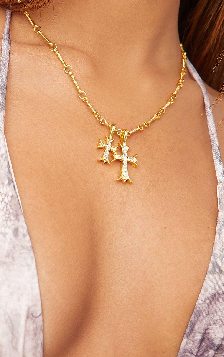 Diamante Crucifix Detail Pendant Necklace In Gold