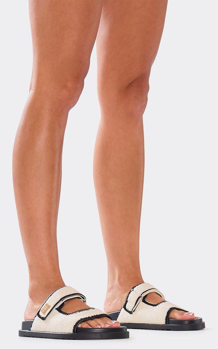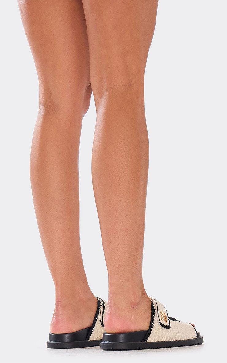 Belle Logo Detail Double Strap Flat Slider Sandal In Cream Knit