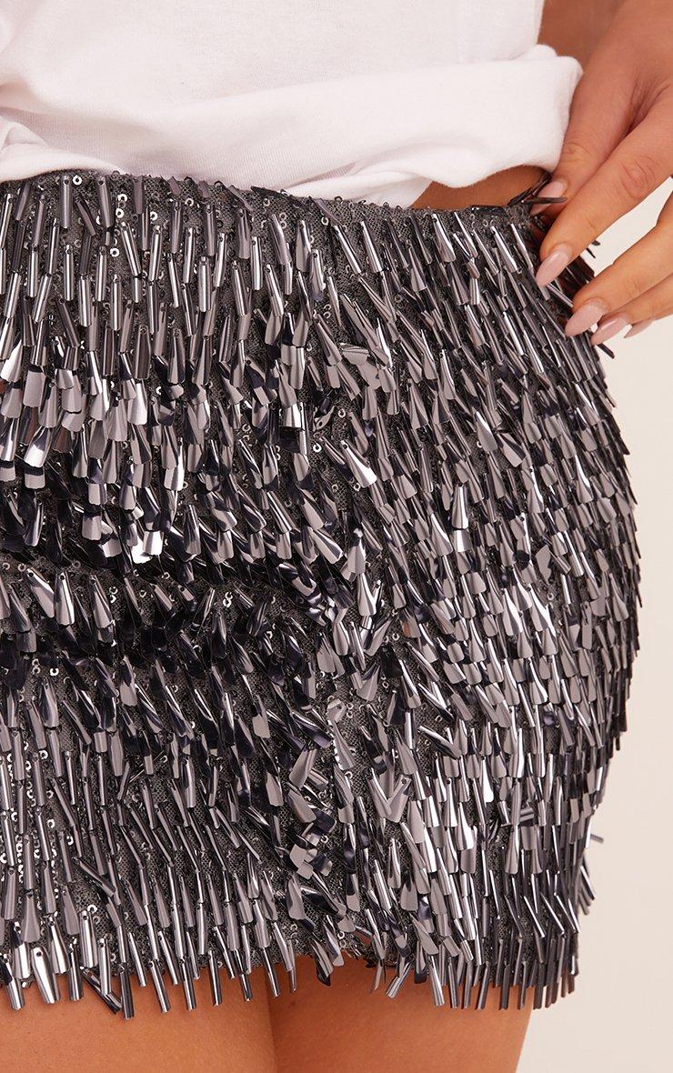 Mid Rise Sequin Mini Bodycon Skirt In Dark Silver