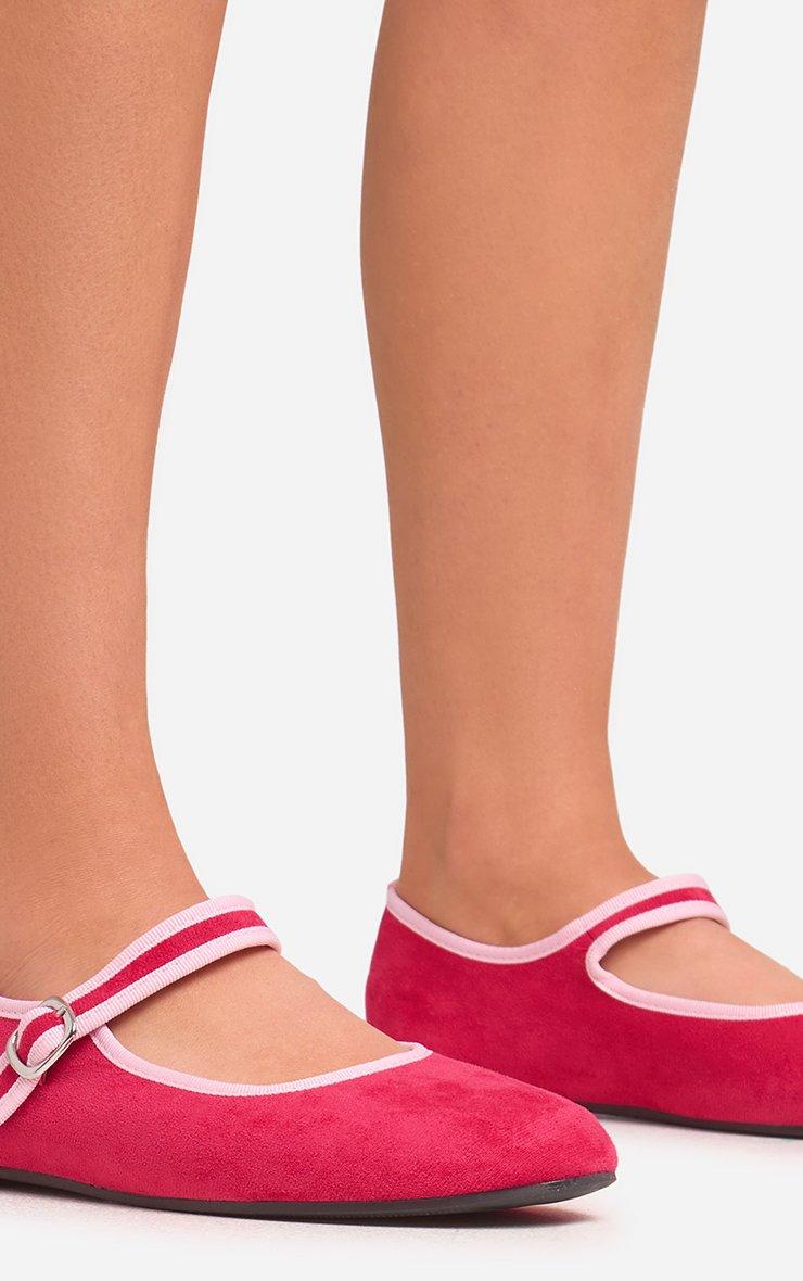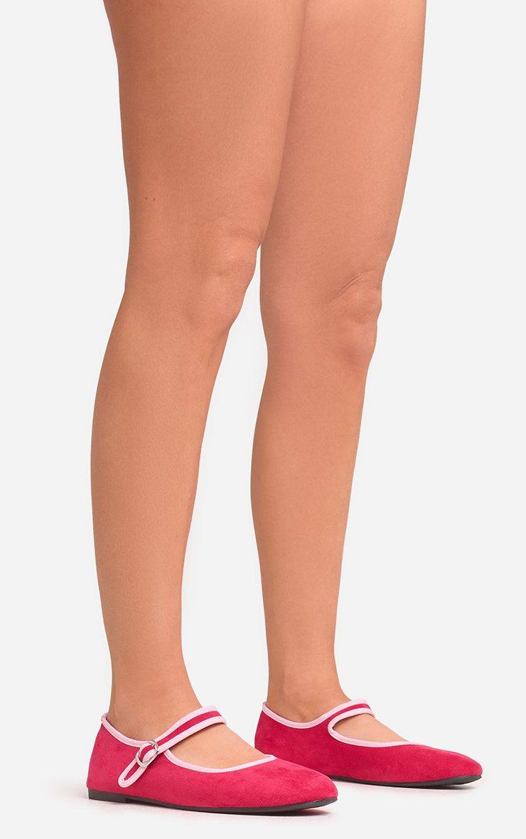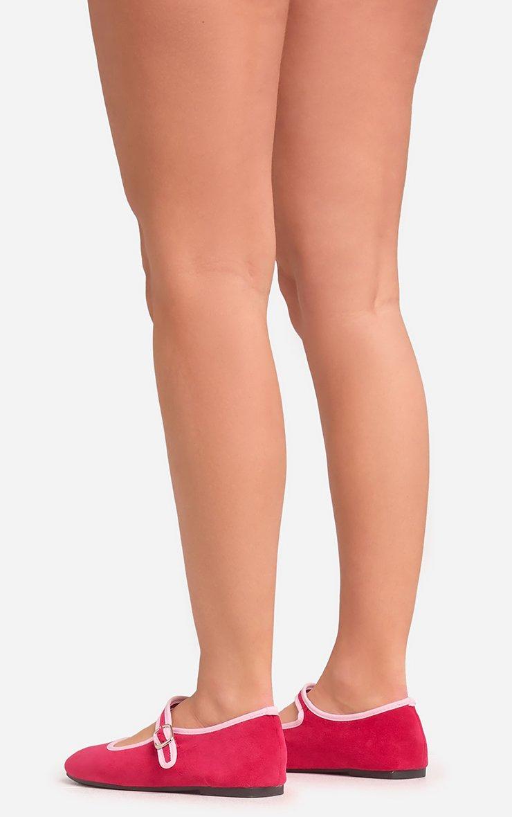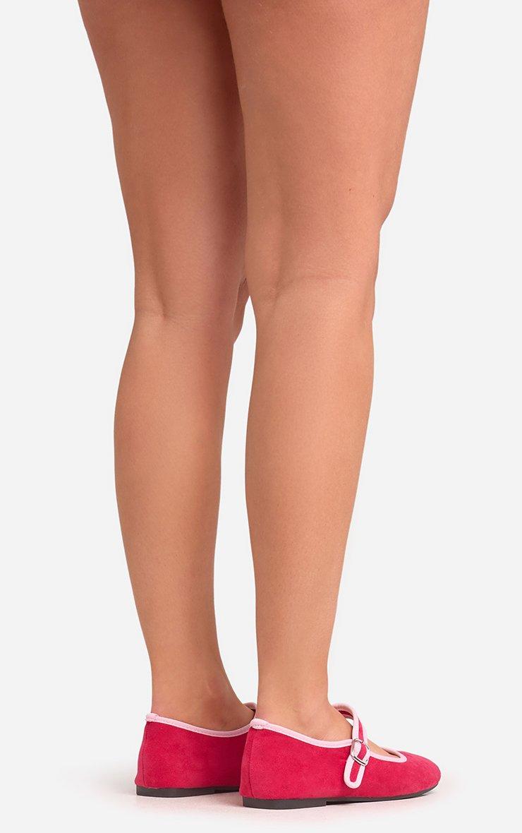 Theme Contrast Trim Buckle Strap Flat Ballet Pump In Pink Faux Suede