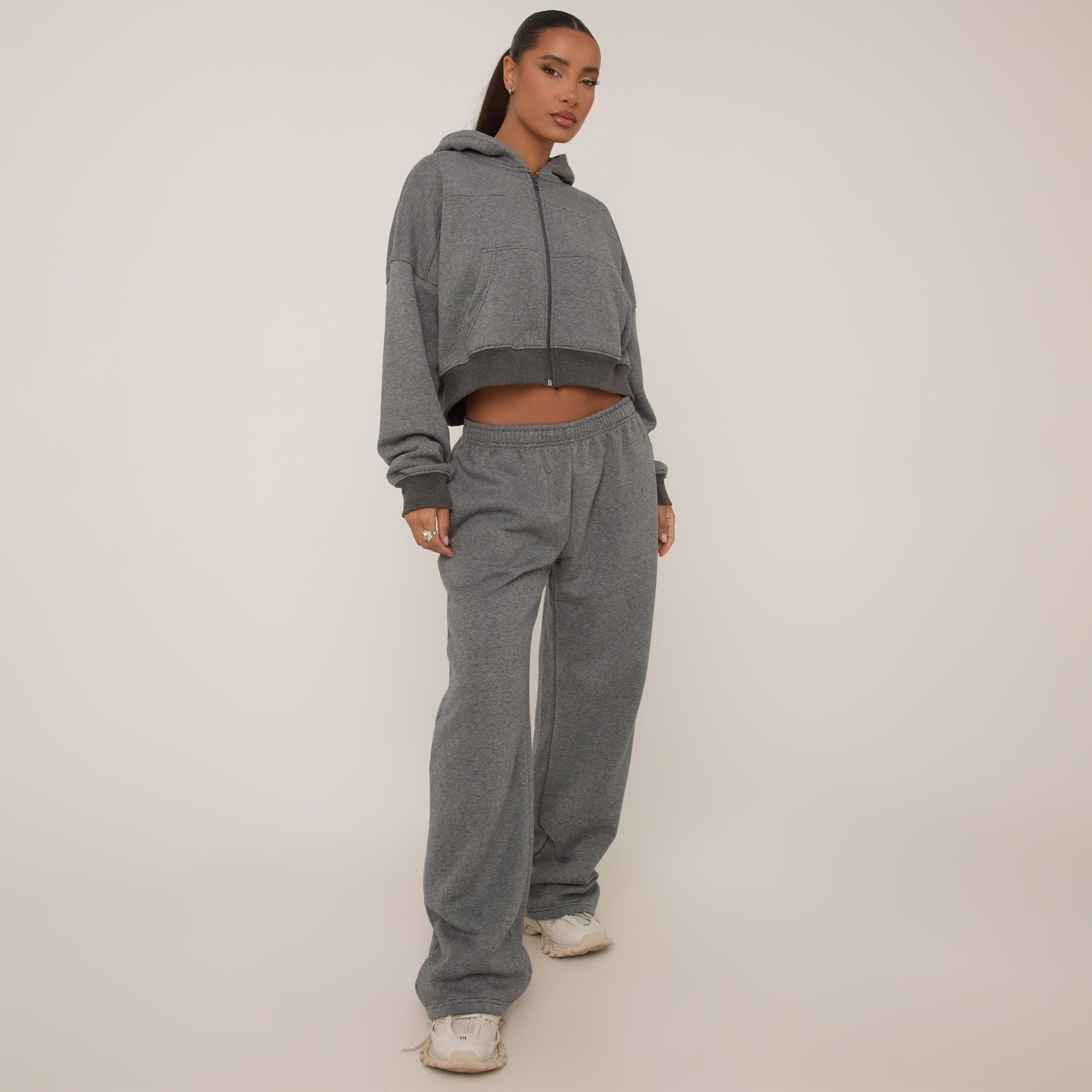 Low Rise Wide Leg Joggers In Grey Stripe