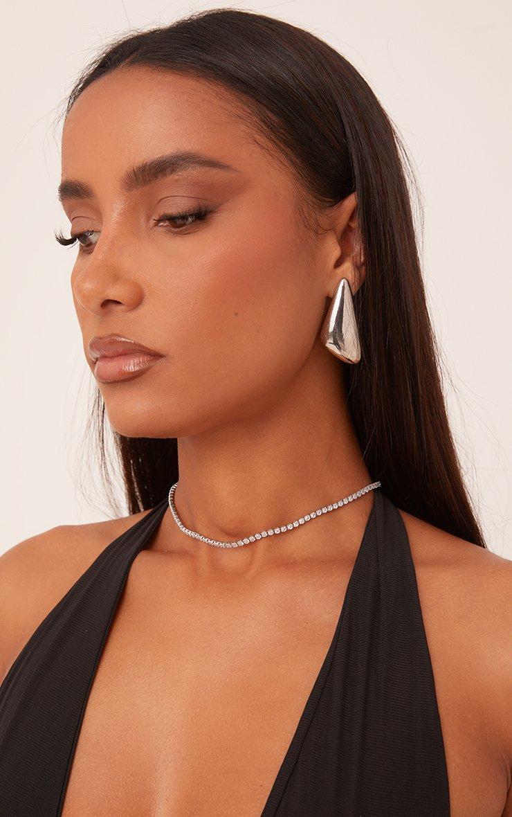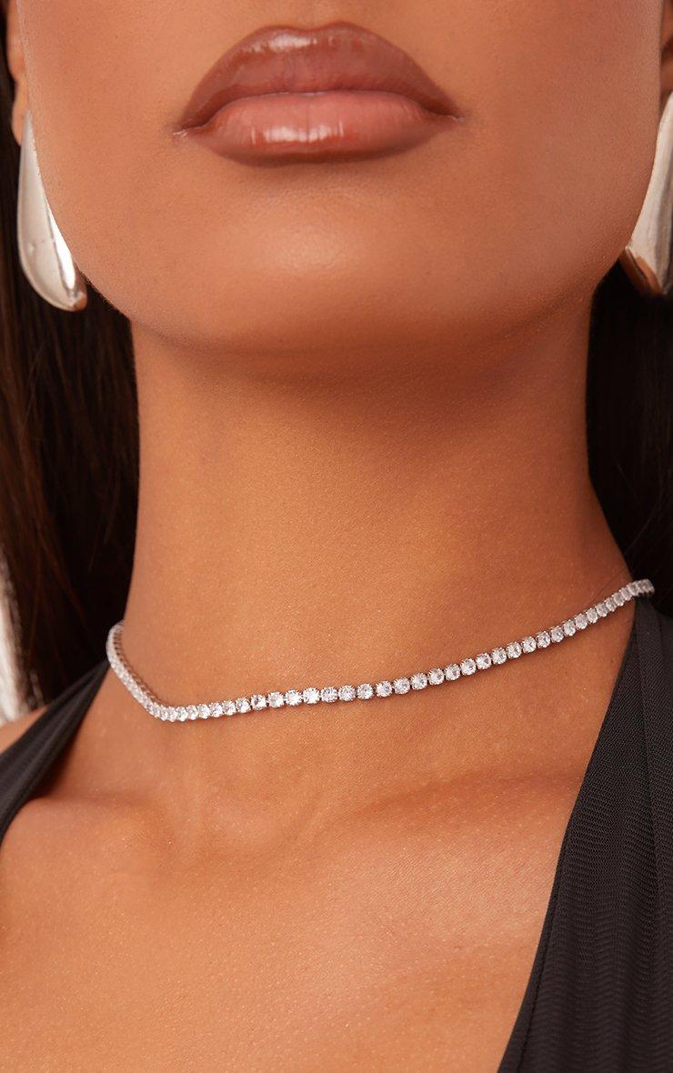 Add a finishing touch to your chosen look doll. Featuring a silver material, with diamante detailing, a delicate chain, clasp fastening and a choker necklace design.