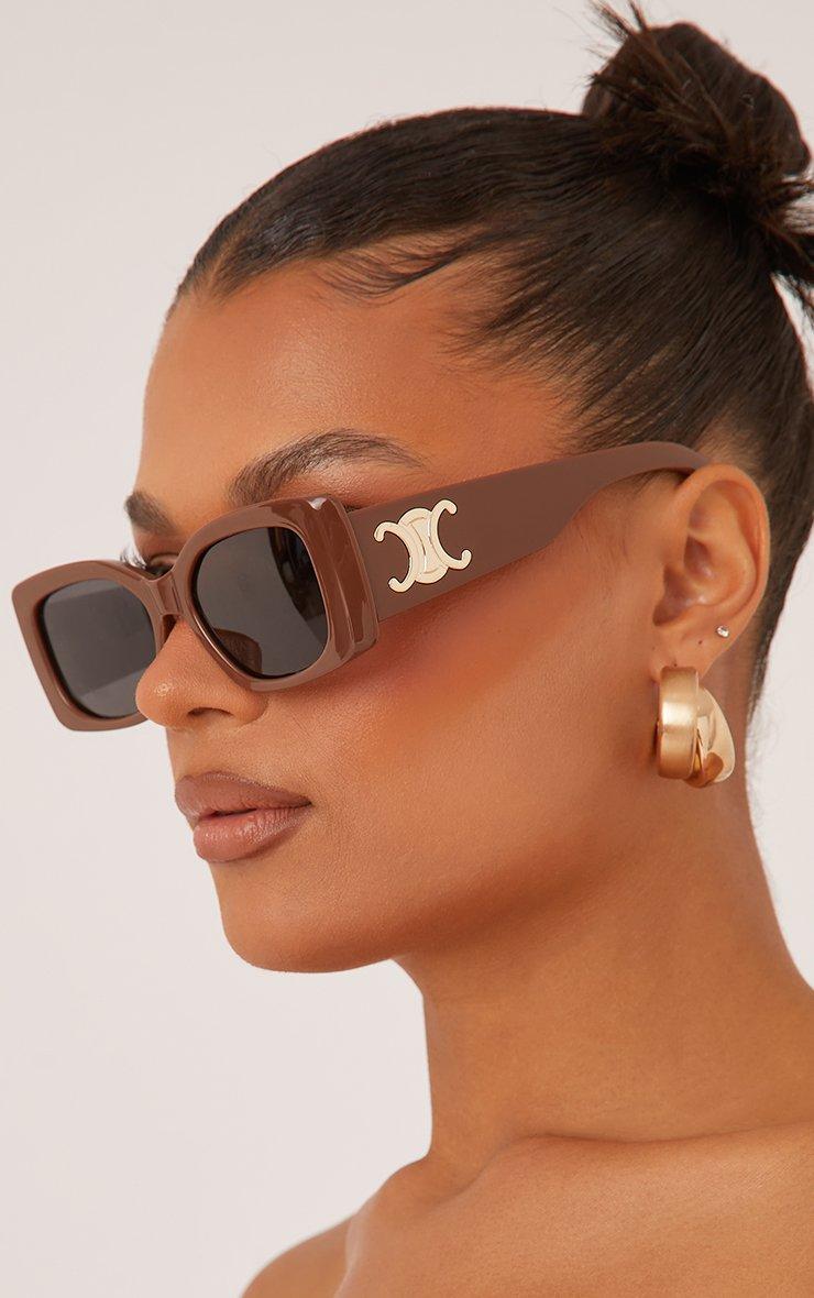 Girl, you can never have too many sunglasses, right? Featuring a brown material, with side logo detailing, a thick frame, rectangle shape and a sunglasses design.