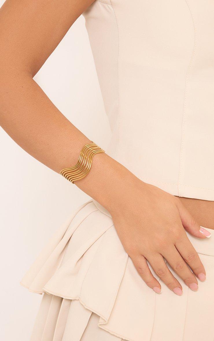 Wave Detail Multi Strap Bangle In Gold