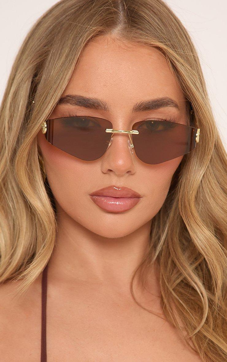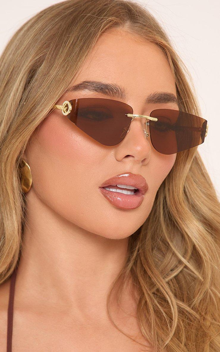 Angular Shaped Side Logo Frameless Sunglasses In Brown