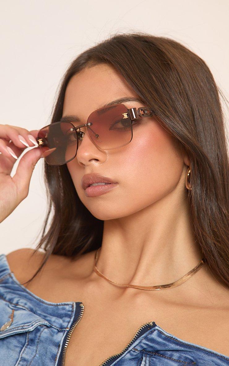 Gold Side Logo Detail Metal Frame Rectangle Shaped Sunglasses In Brown