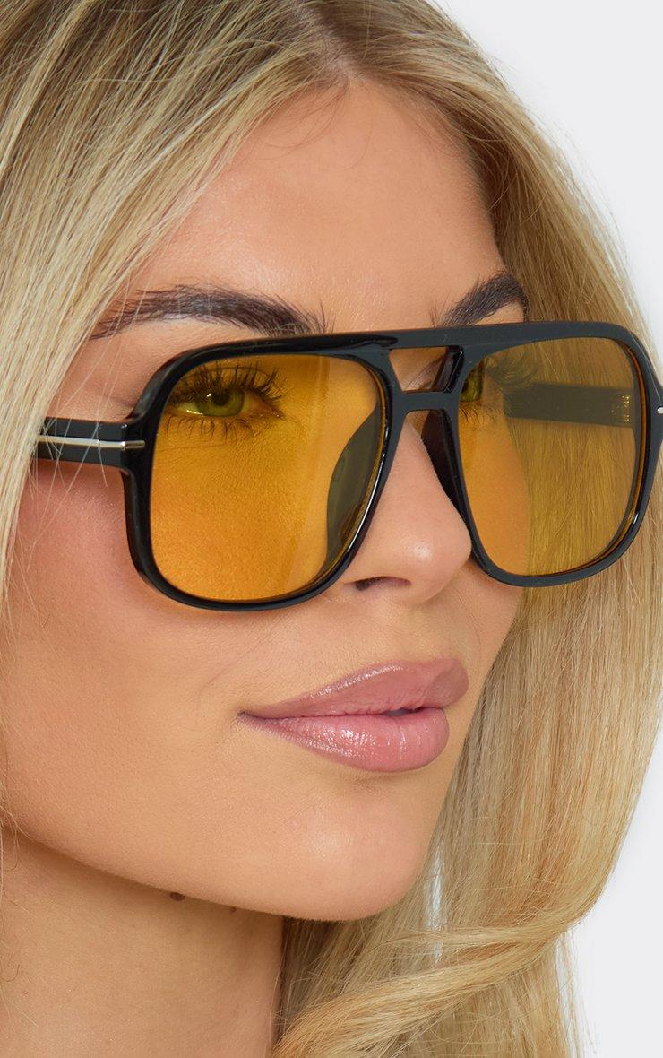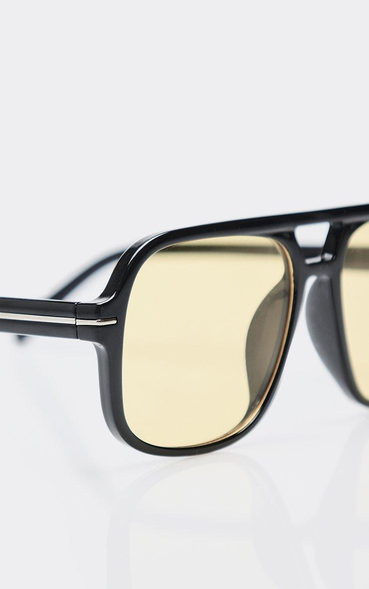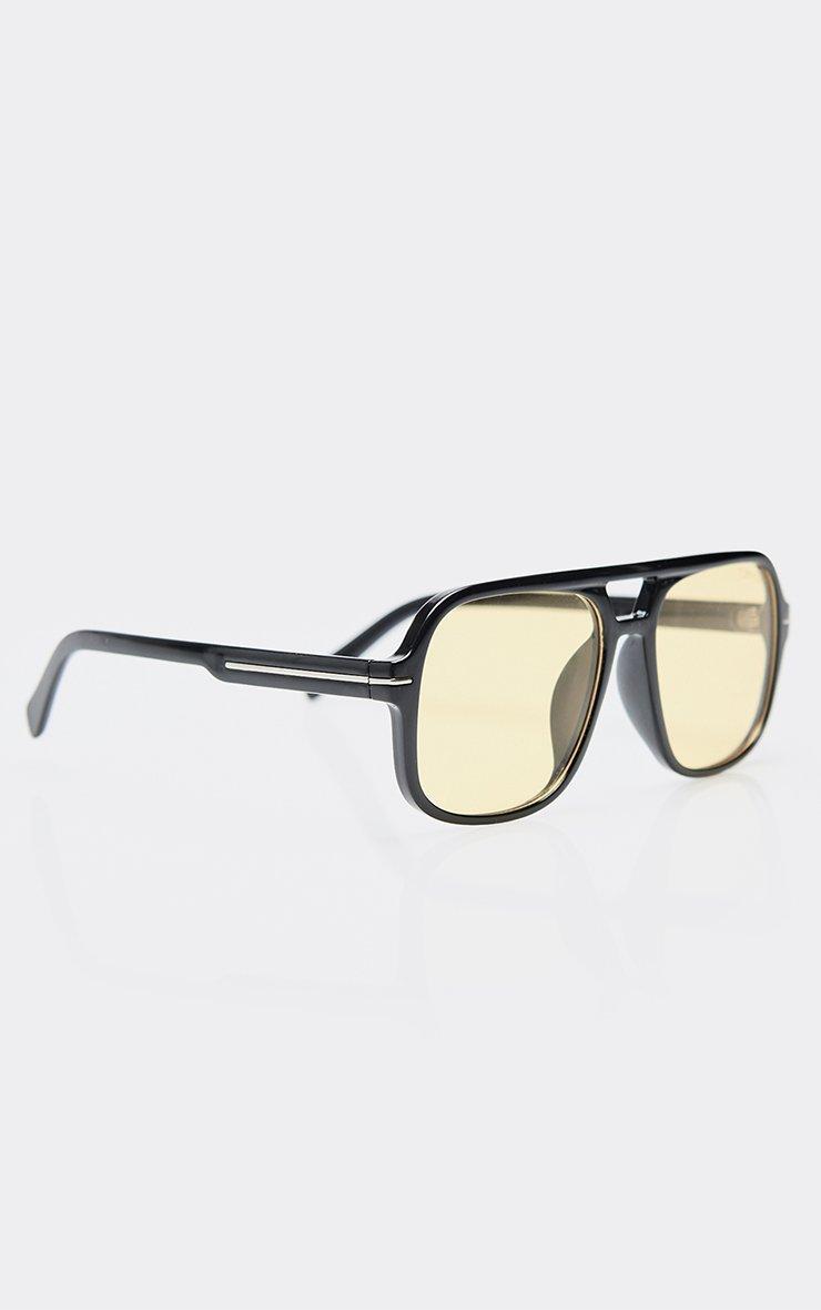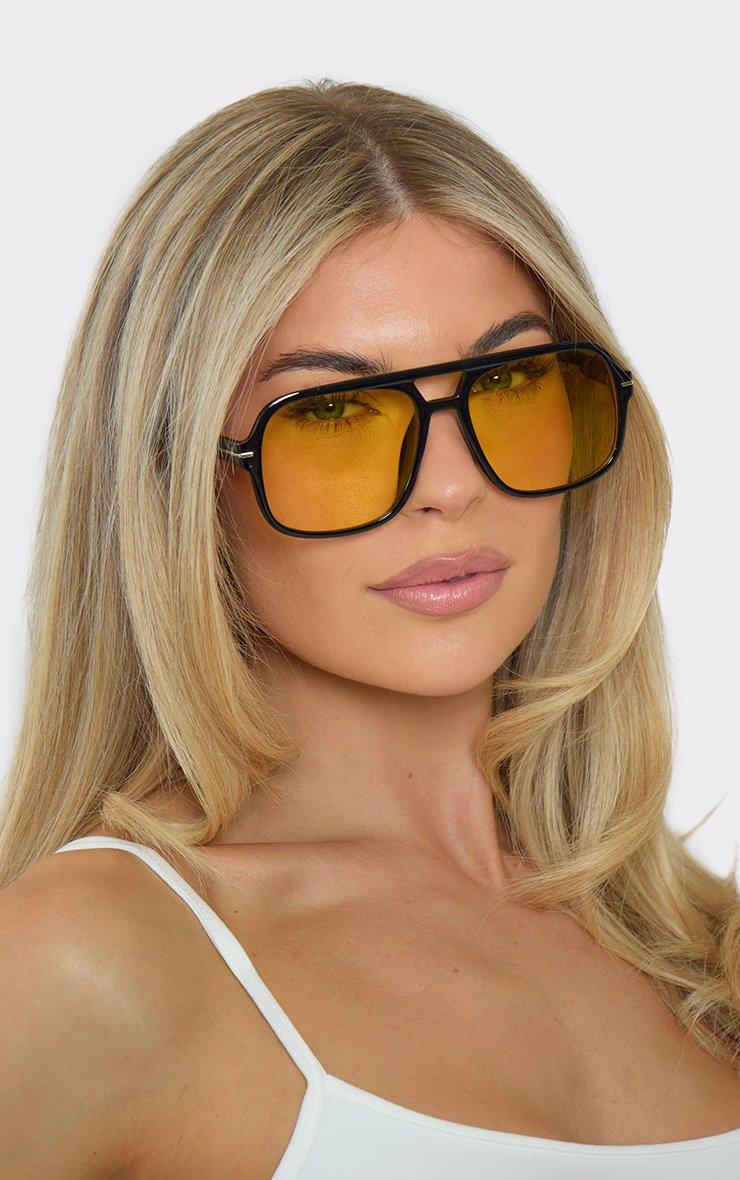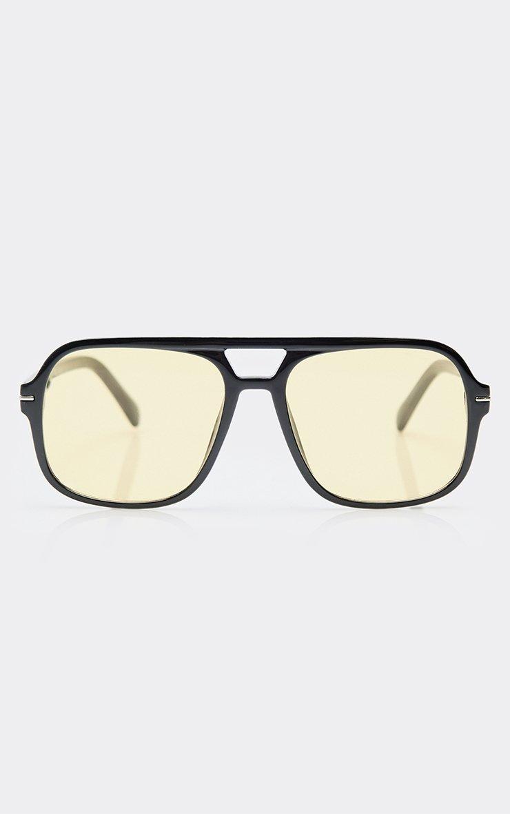Oversized Yellow Tinted Lense Aviator Style Sunglasses In Black