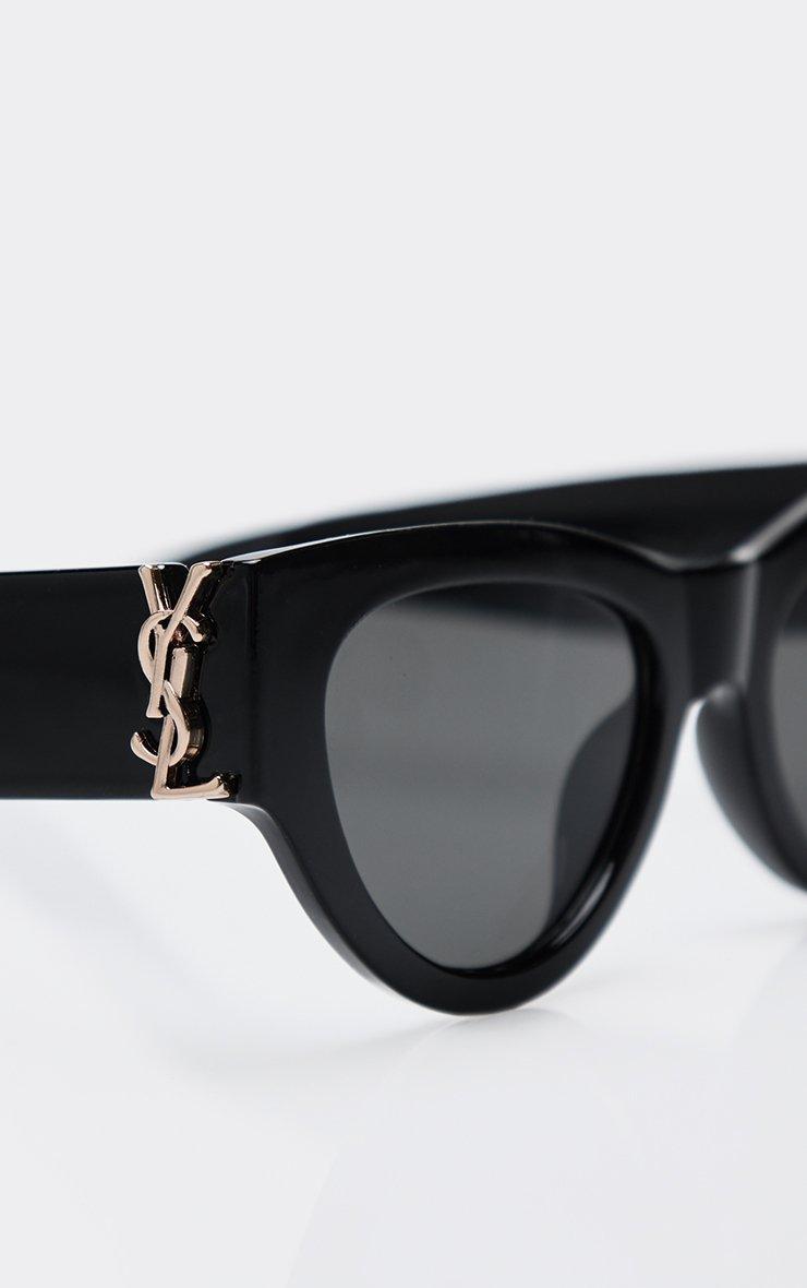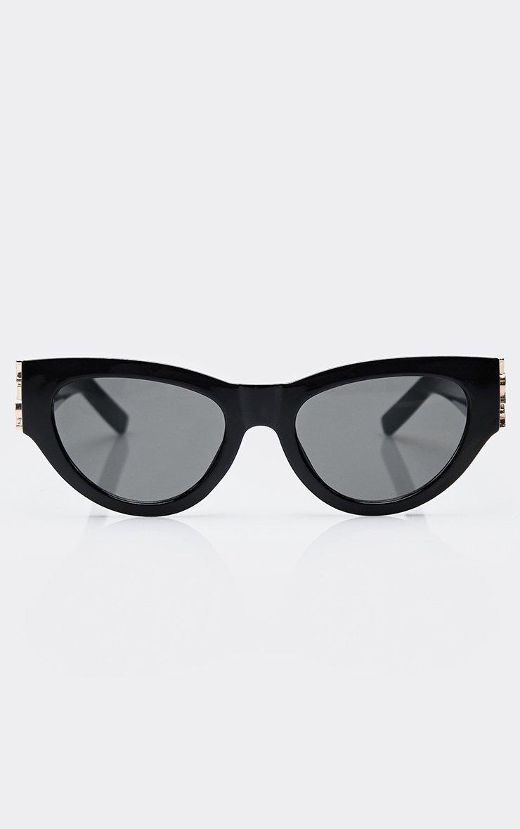 Frame the face, doll. Featuring black material with a thick cat-eye frame and side logo detailing, these sunglasses are a total mood. Style with a matching black mini dress and gold hoops for a classic, mysterious aesthetic.