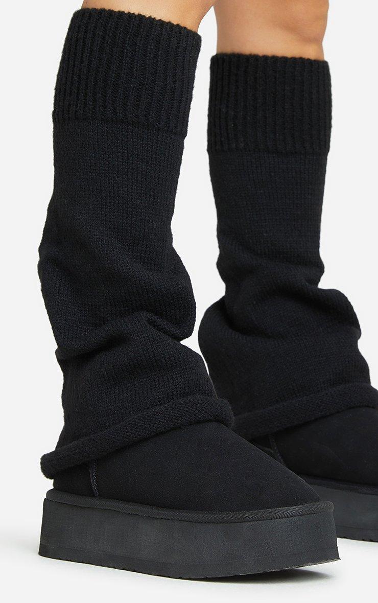 Elevate your off-duty look with these new season must haves. Featuring a black knit material, with a flared legwarmer design.