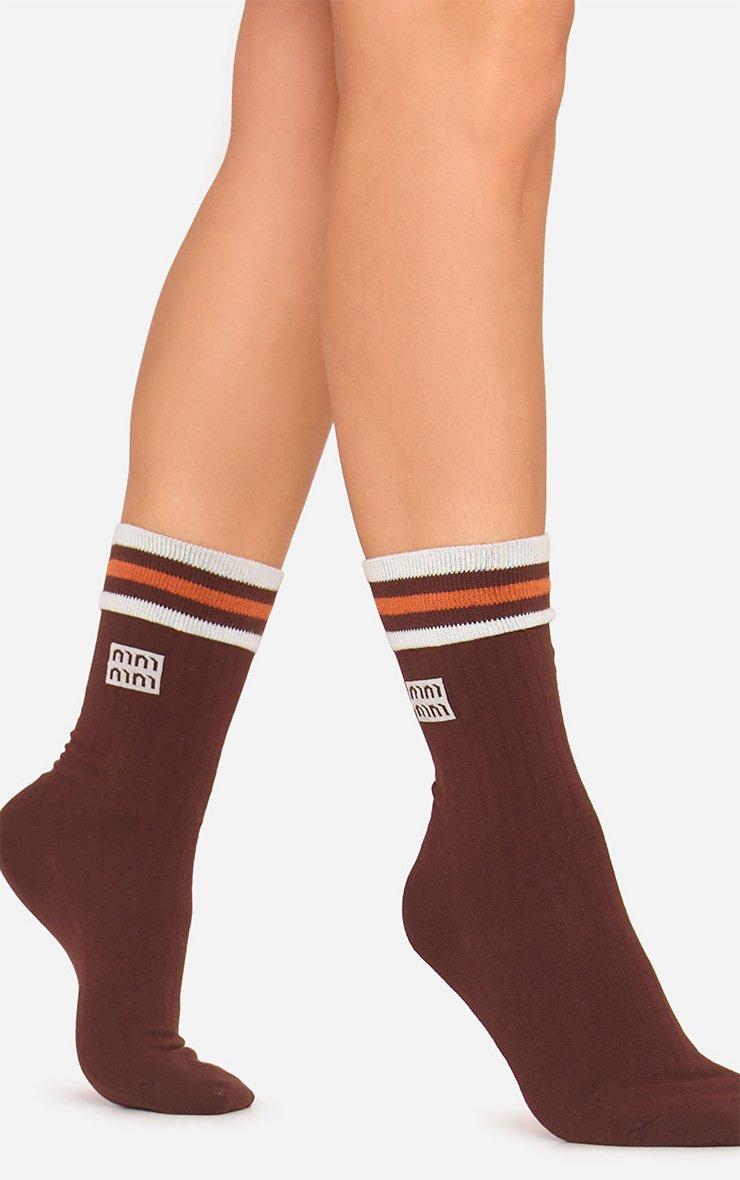 Stripe Logo Detail Sport Socks In Brown