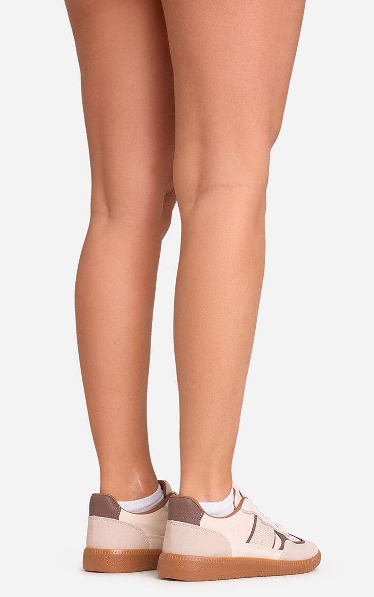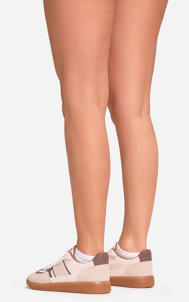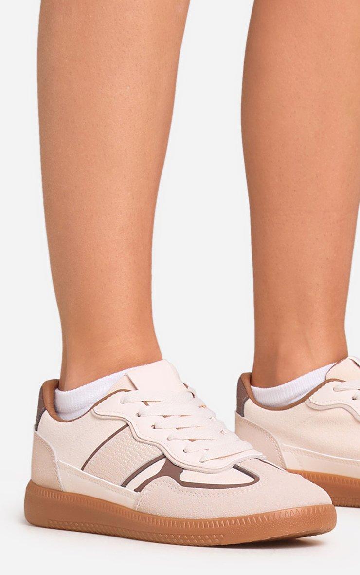 Keep it sleek and effortless, doll! Featuring a cream and brown faux suede material with a lace-up design, these flat trainers bring a fresh, laid-back vibe to your casual wardrobe.