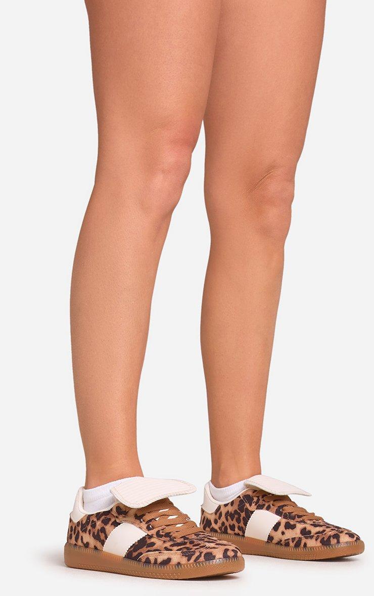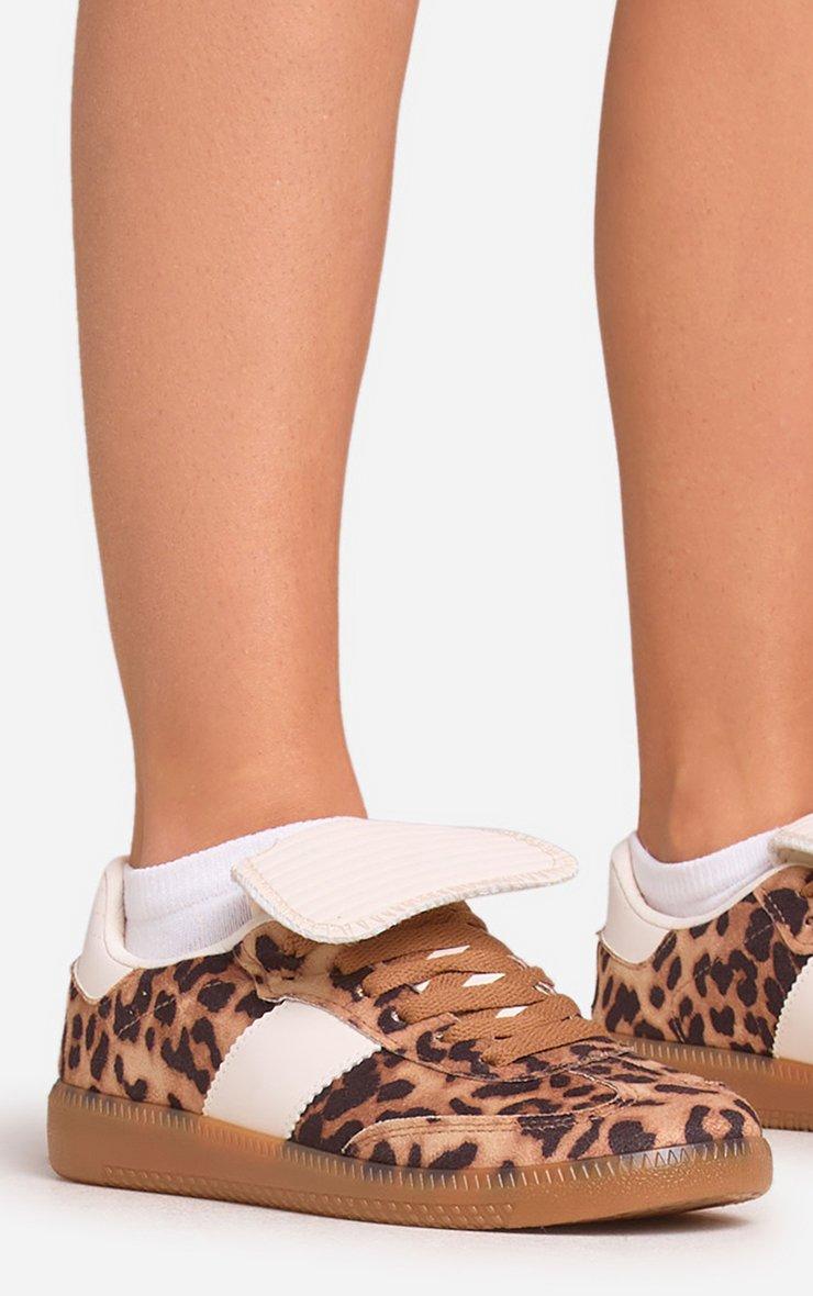 Rorey Lace Up Fold Over Detail Flat Trainer In Leopard Print