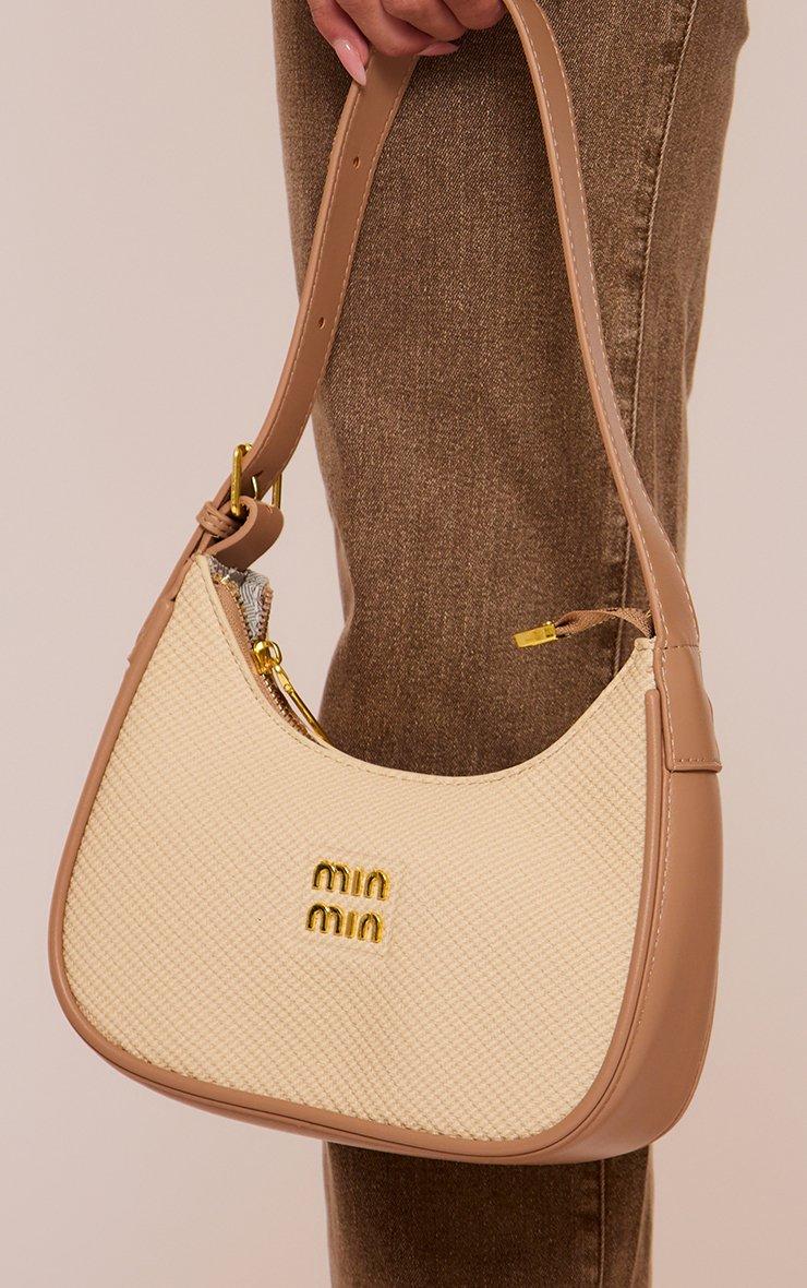 Palaton Logo Detail Shaped Shoulder Bag In Beige Woven