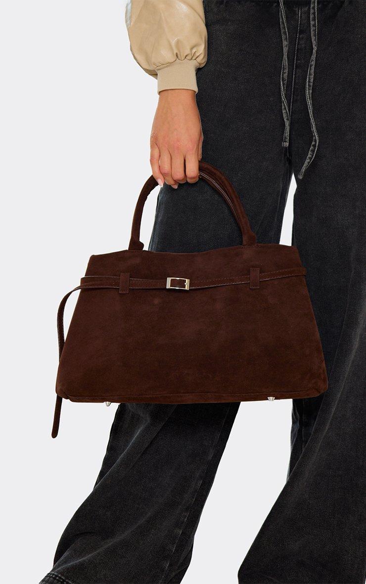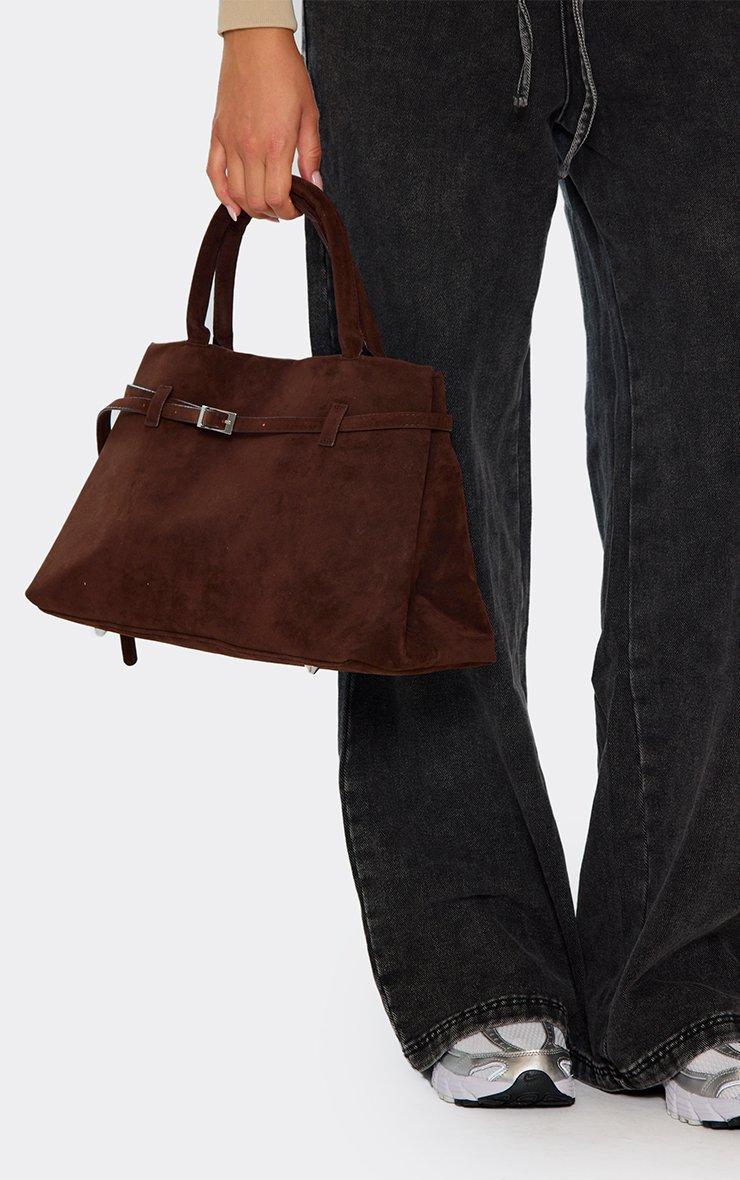 Step up your day-to-day edit, doll! Crafted in brown faux suede, this tote bag features buckle detailing and a shaped design, serving up a chic, polished finish for any outfit.