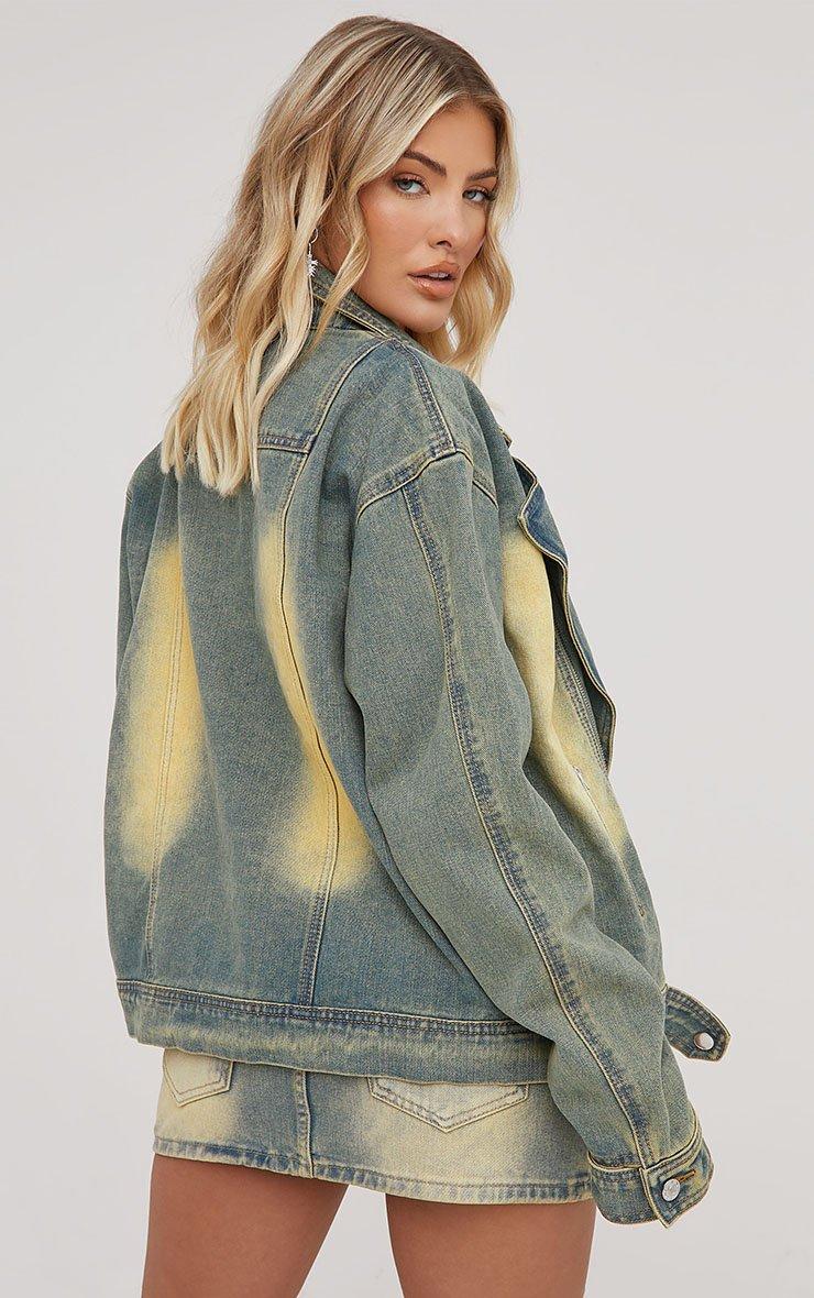 This jacket is a yes from us. Featuring a blue vintage washed denim material and an oversized fit.