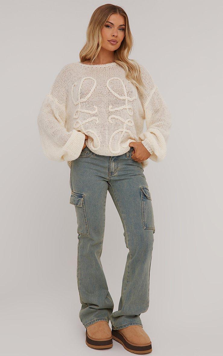 You’ll obsess over our Long Sleeve Swirl Detail Jumper In Cream Knit. This oversized cream knit jumper is cute and cosy with its long sleeves and chic swirl detail. Style this knitted jumper with your fave jeans for an instant OOTD slay!