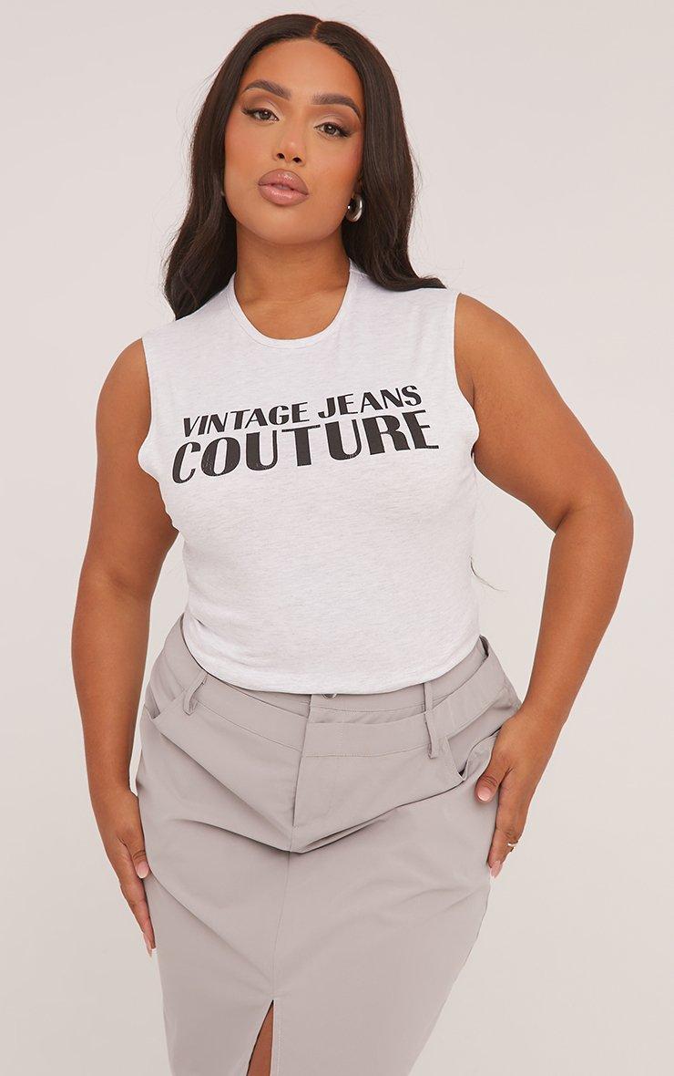 Plus Sleeveless Vintage Jeans Couture Vest Top In Grey