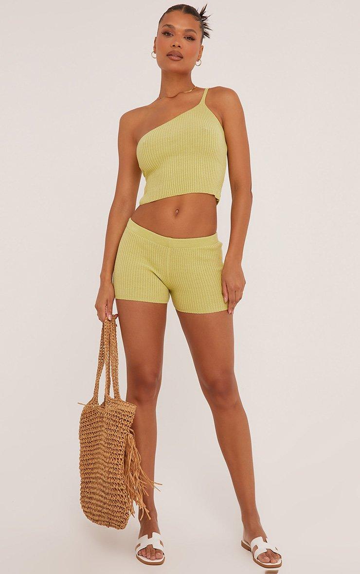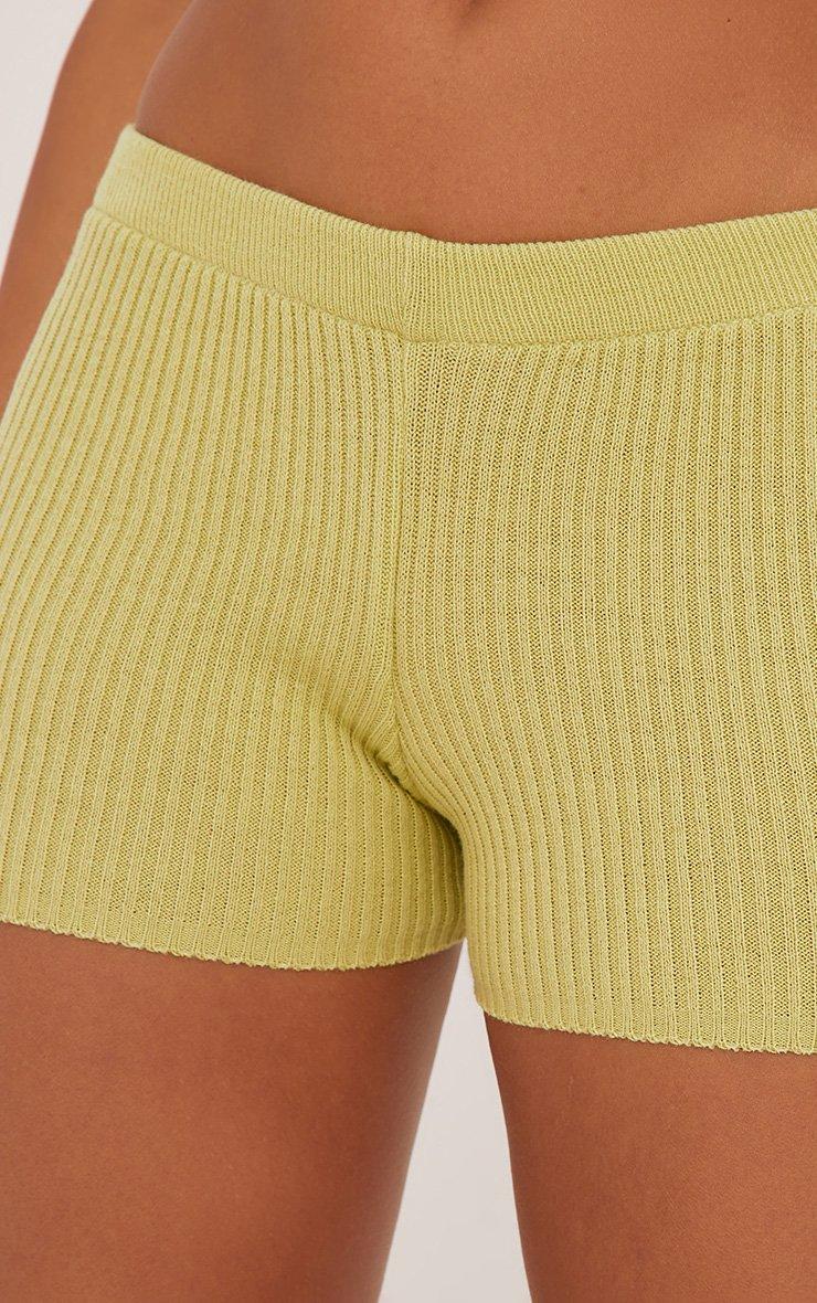 Hit refresh on your summer wardrobe with these shorts. Featuring a lime green knit material, a low rise and a micro length.