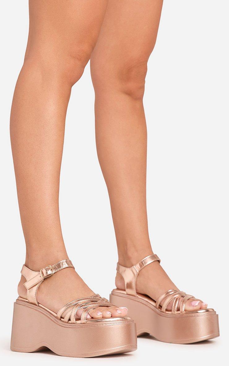 Mario Cross Strap Platform Wedge Heel In Rose Gold Faux Leather