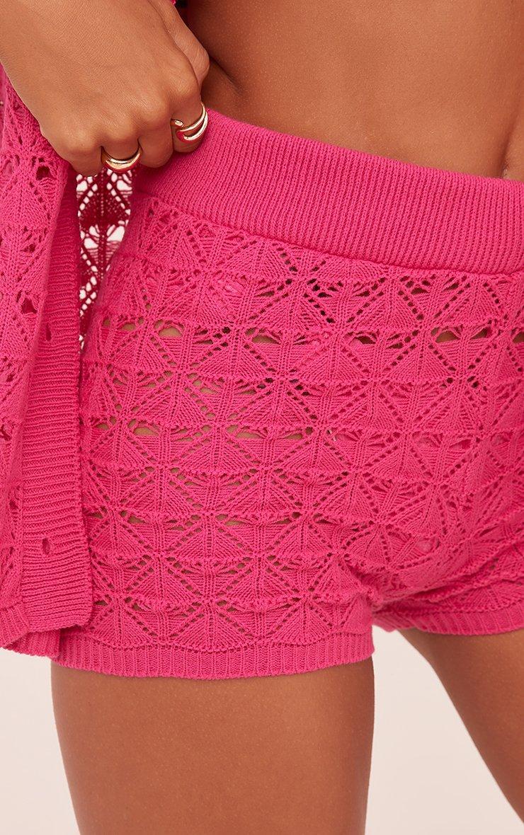 Mid Rise Shorts In Hot Pink Geometric Crochet Knit