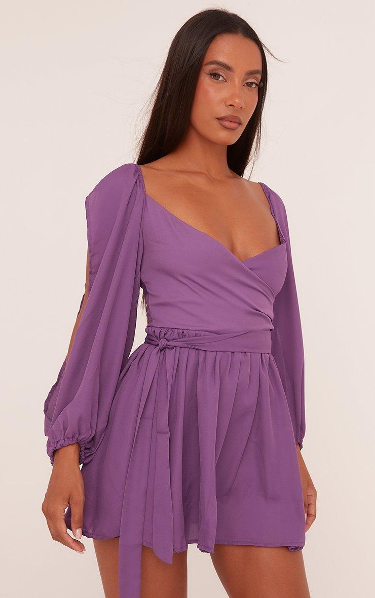 This dress was made for day to night looks, no more 'what to wear?' dilemmas here doll! Featuring a plum material, long split sleeves, a tie waist, a flippy hem and a mini length.
