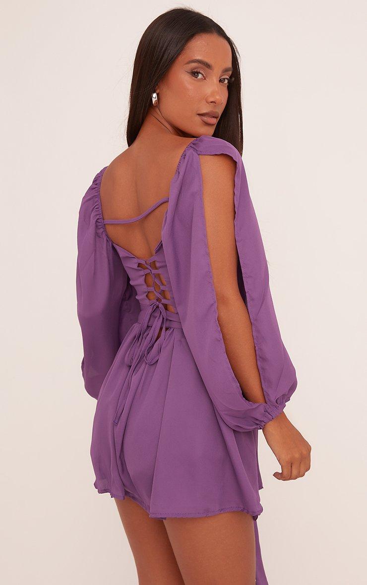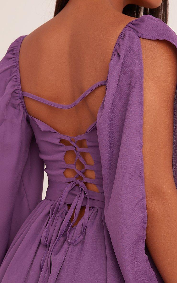 Long Split Sleeve Tie Waist Flippy Hem Mini Dress In Plum