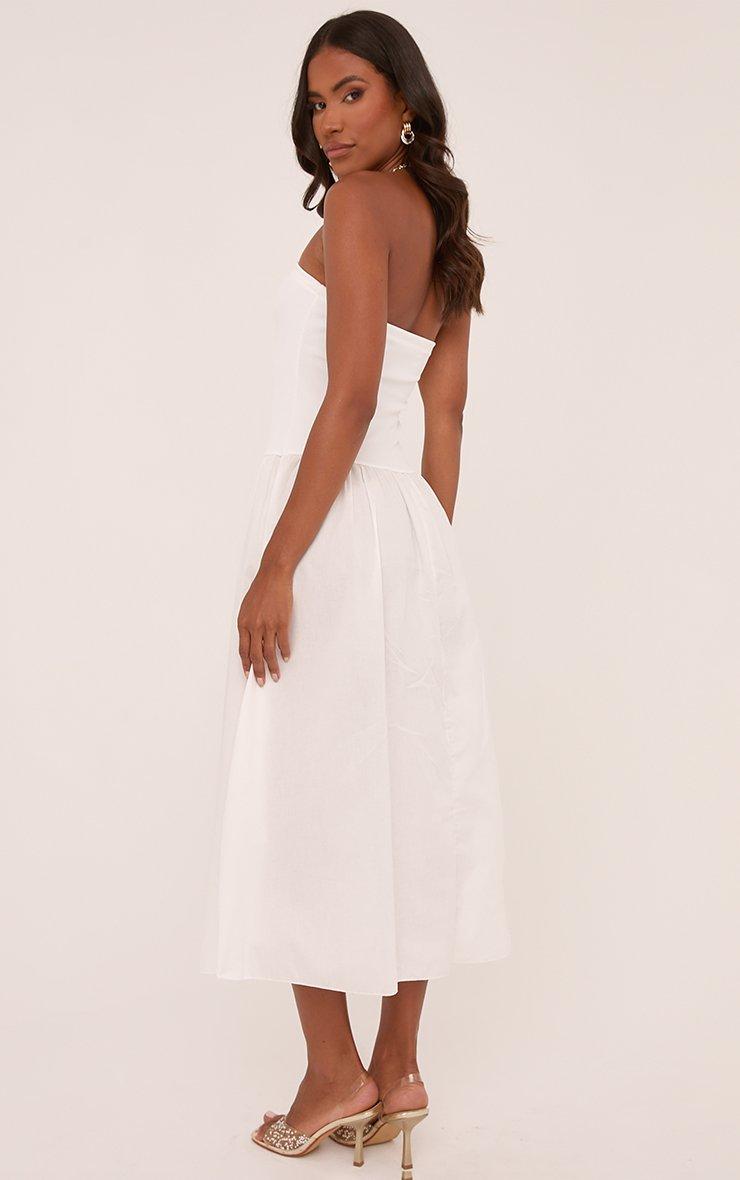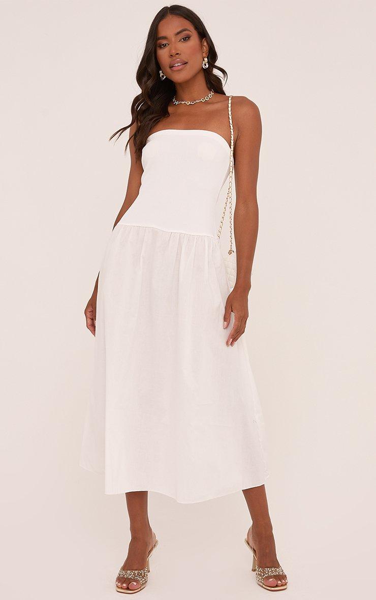 Bandeau Dropped Hem Midi Dress In White Woven
