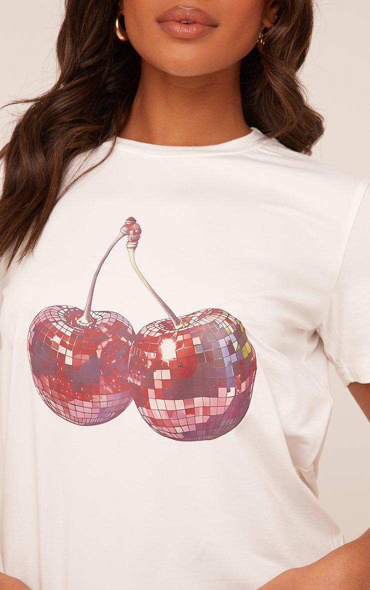 Short Sleeve Disco Cherry Graphic Print T-Shirt In White