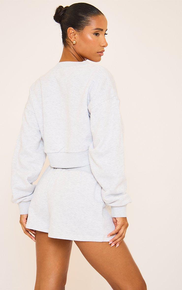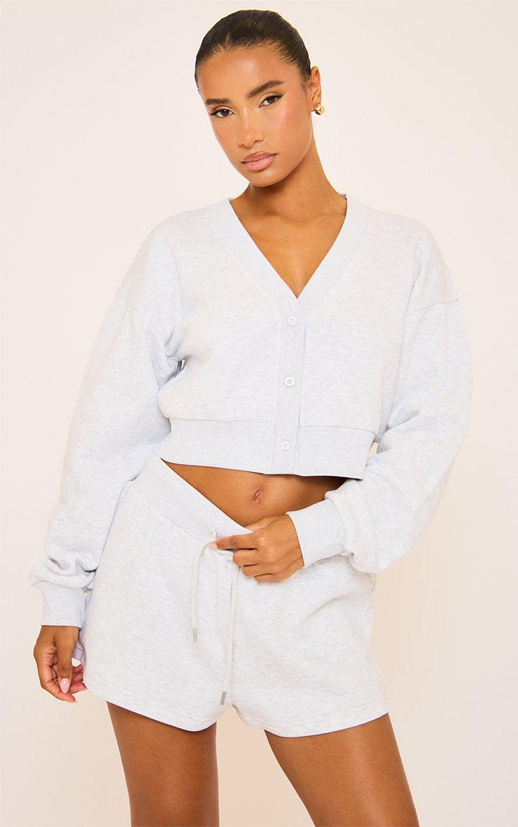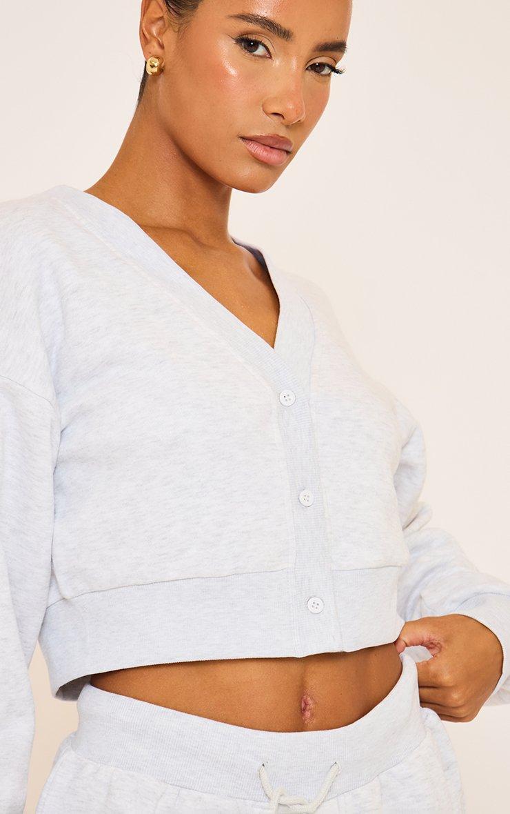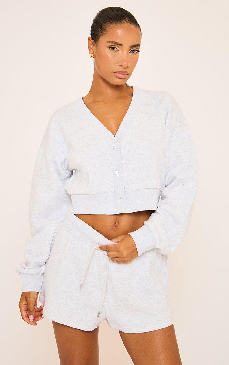 Short Sleeve V Neck Button Front Detail Sweatshirt In Grey