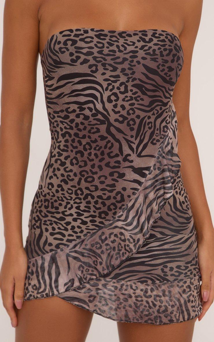 Bandeau Choker Detail Mini Bodycon Dress In Brown Leopard Print