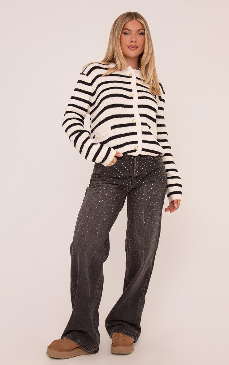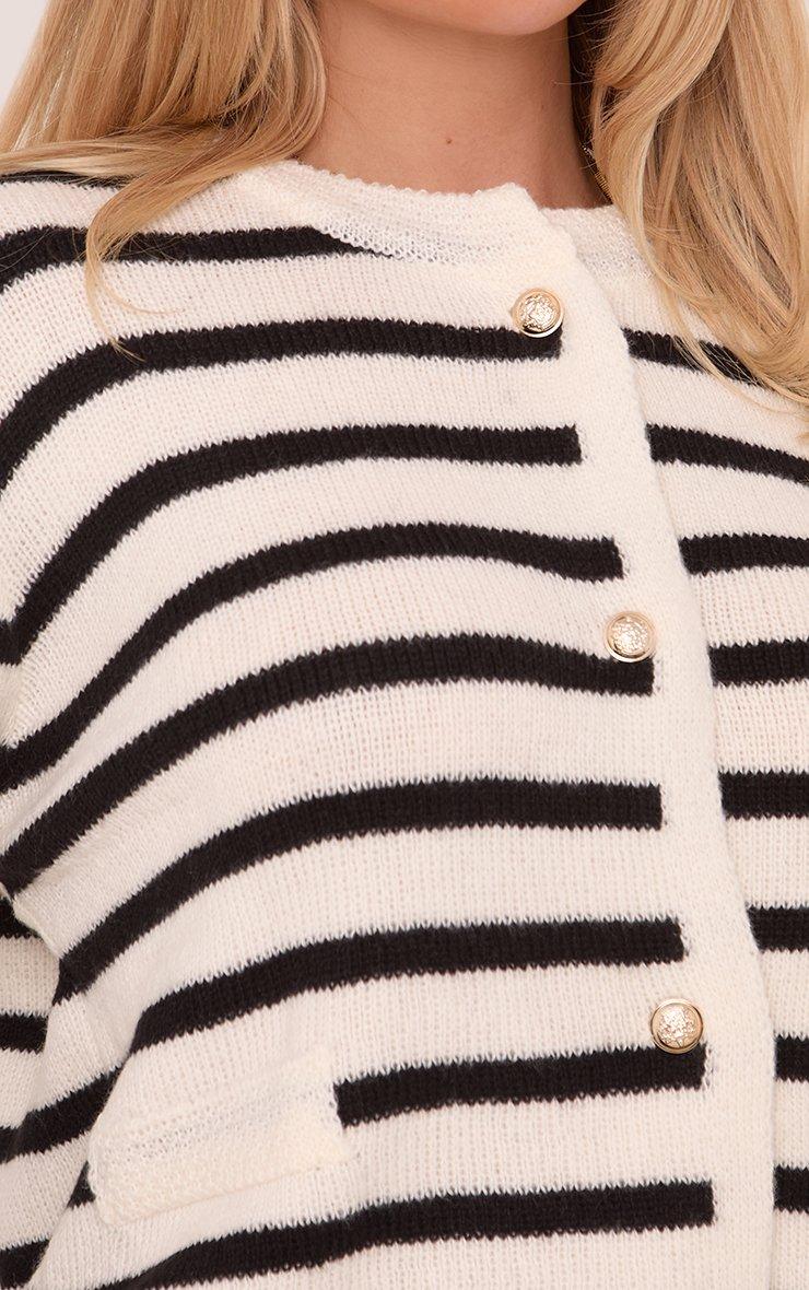 Gold Button Detail Cardigan In Black Stripe Knit
