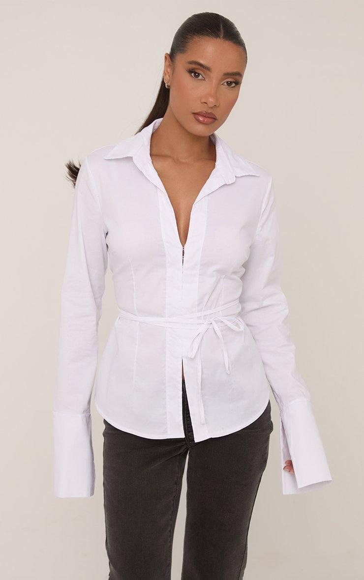 Long Sleeve Hook And Eye Tie Detail Shirt In White