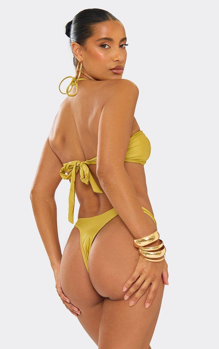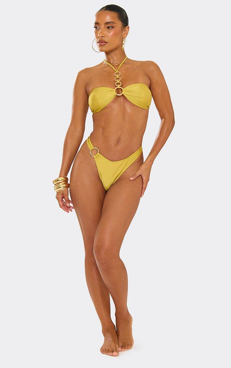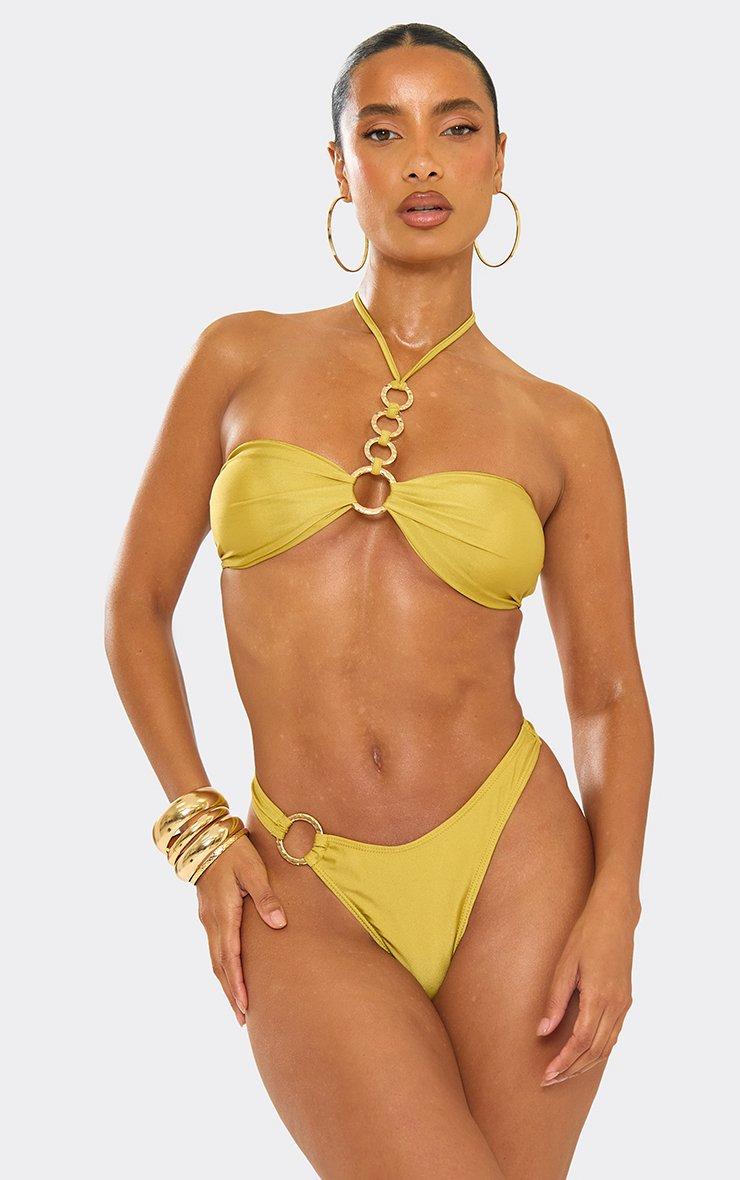 Halterneck O Ring Detail Bikini Set In Olive Green